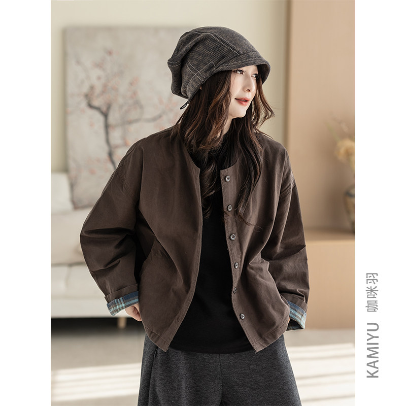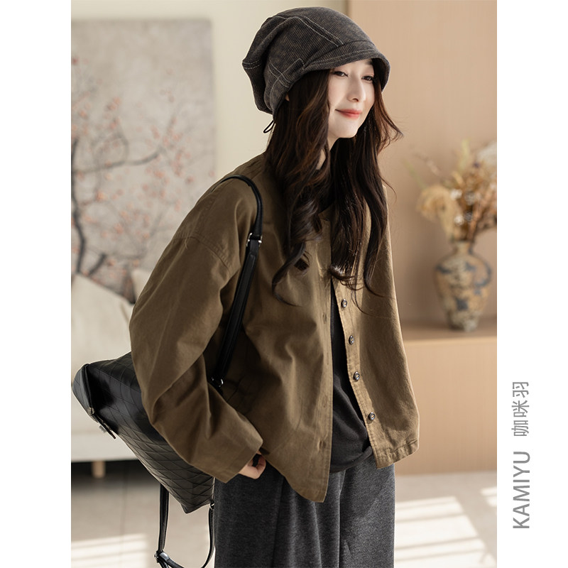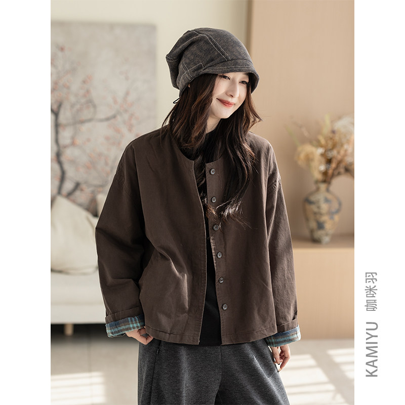 咖咪羽外套女秋冬新款复古文艺时尚女士百搭简约气质显瘦女装上衣