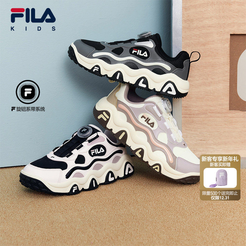 FILA斐乐儿童童鞋运动鞋子2025冬新款男女中大童跑鞋旋钮扣篮球鞋
