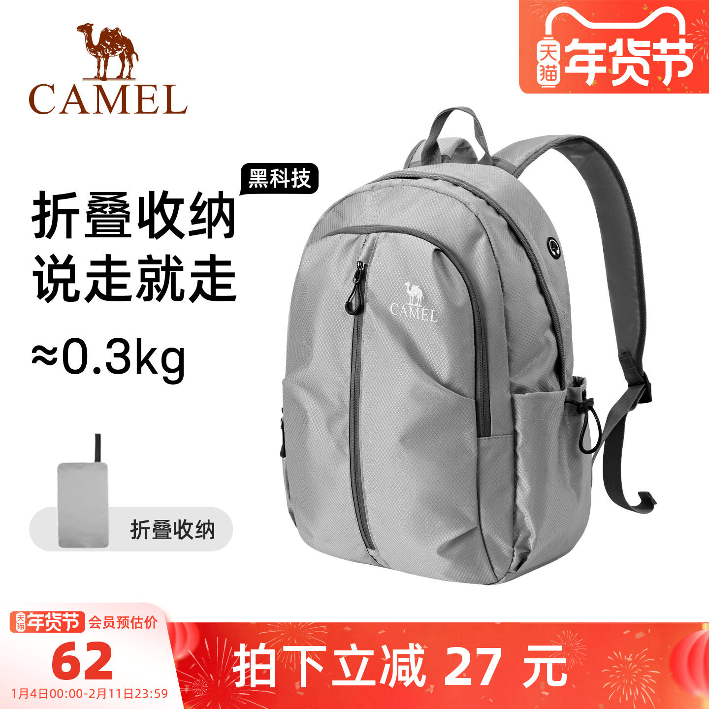 骆驼轻便旅游旅行徒步爬山登山包可折叠大容量轻量背包运动双肩包