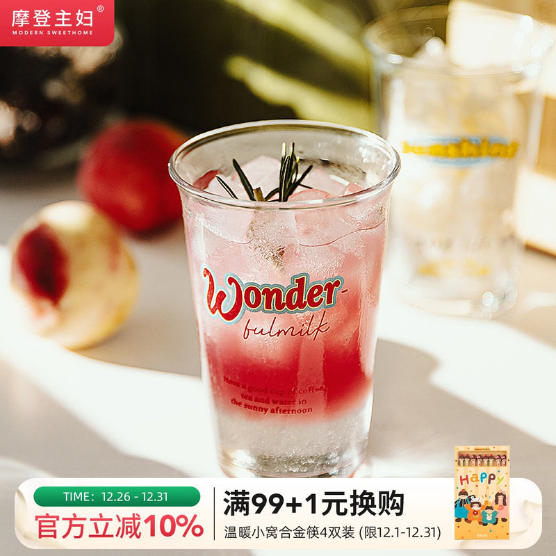 摩登主妇原创玻璃水杯ins风家用女生喝水杯子牛奶果汁啤酒咖啡杯