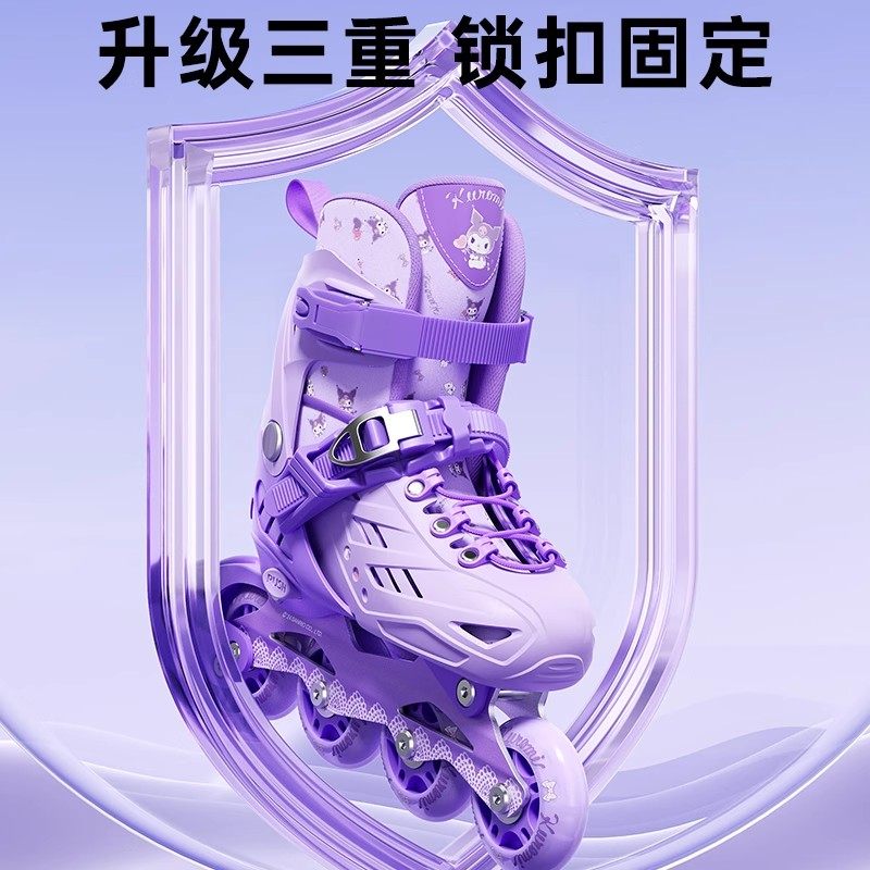 库酷洛米溜冰鞋女童轮滑男童滑轮儿童滑冰6-12岁旱冰全套装初学者