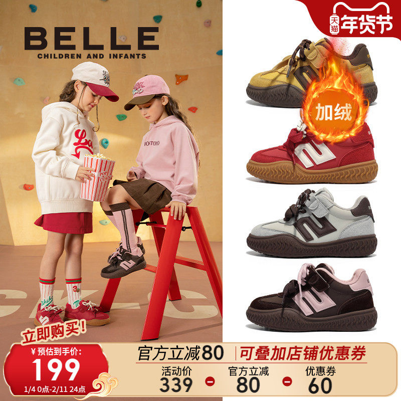 百丽童鞋女童加绒德训鞋冬季新款男童运动鞋儿童休闲板鞋中大童鞋