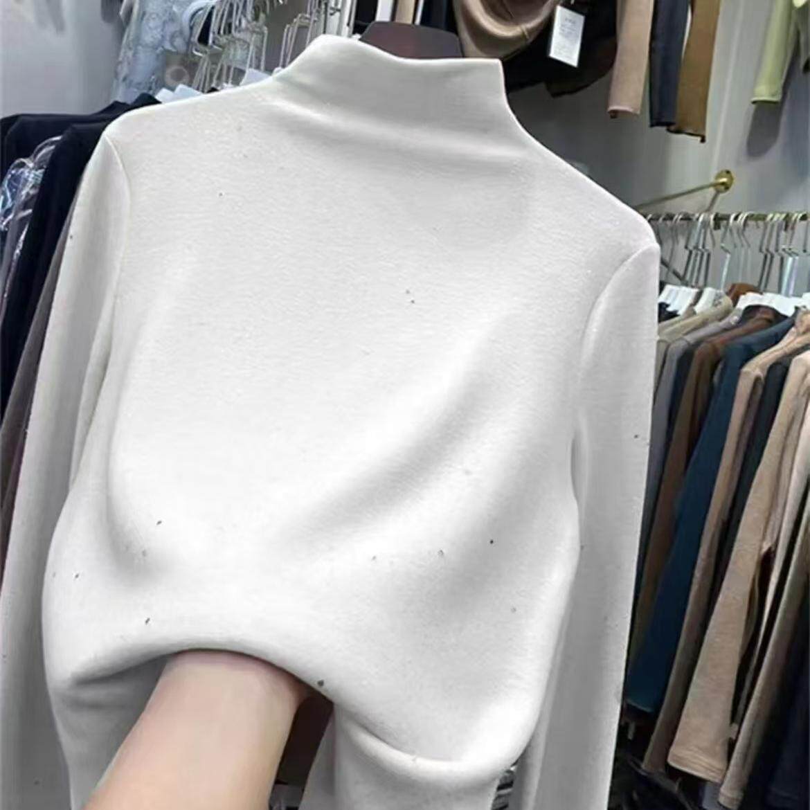 半高领内搭加绒加厚打底衫女冬一体绒可外穿中领螺纹T恤保暖上衣
