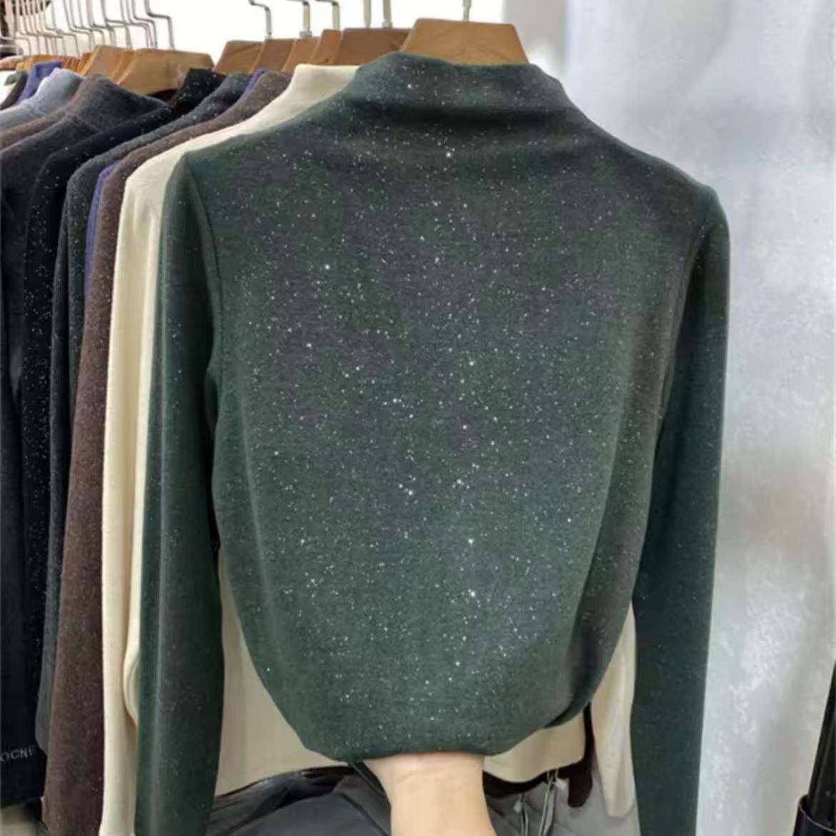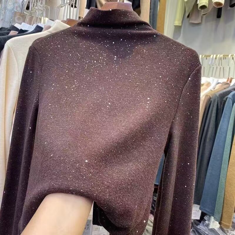 秋冬新款设计感满天星德绒亮片打底衫轻奢半高领T恤内搭高档上衣