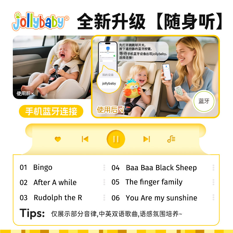 jollybaby跳跳球婴儿玩具户外锻炼早教益智录音复读故事毛绒水果