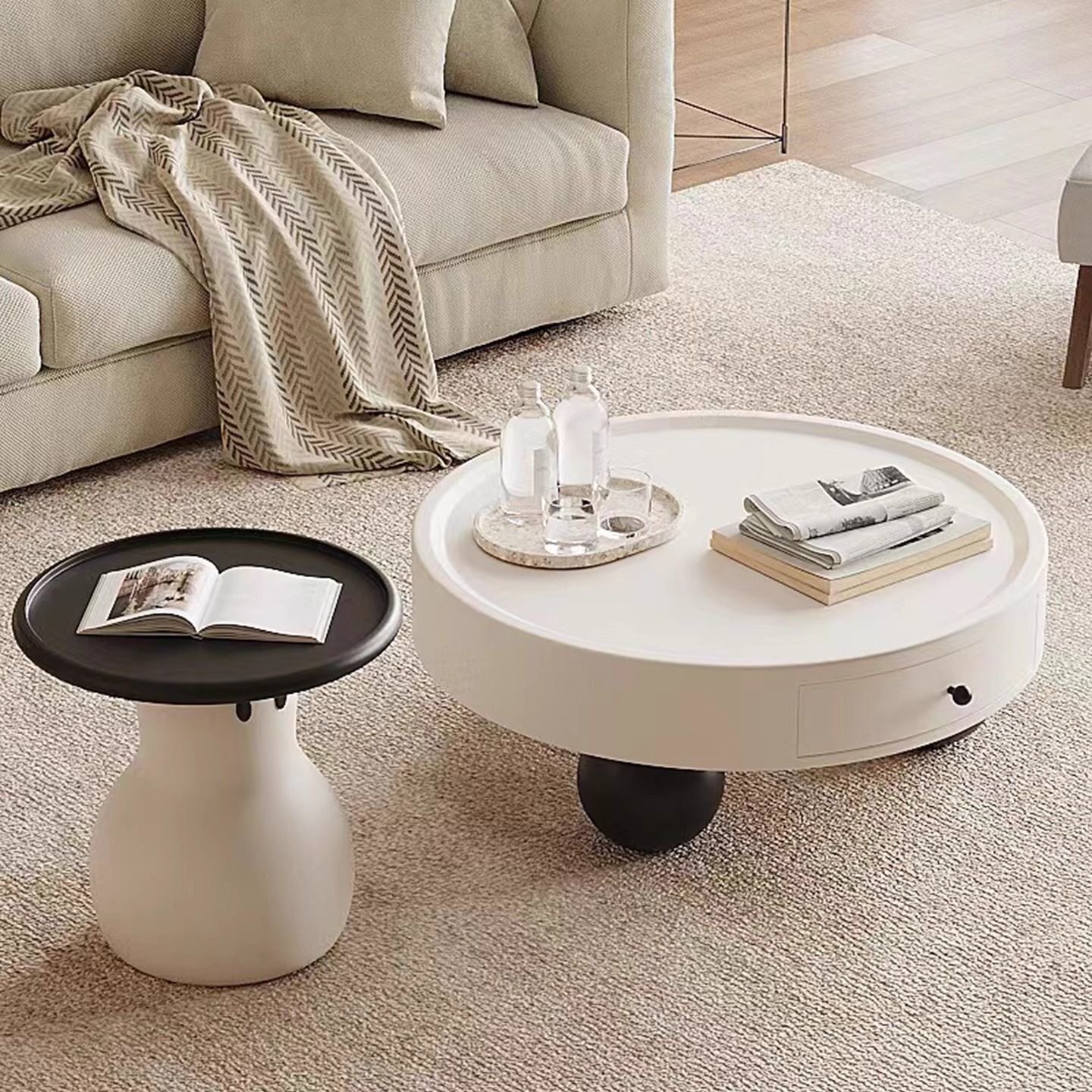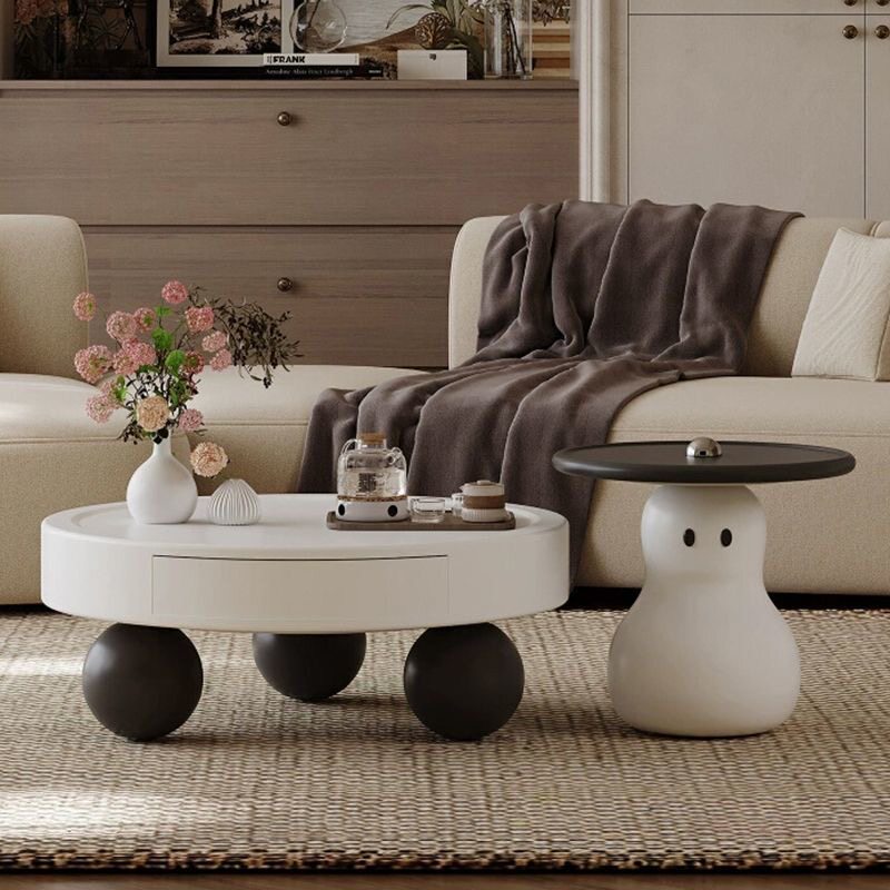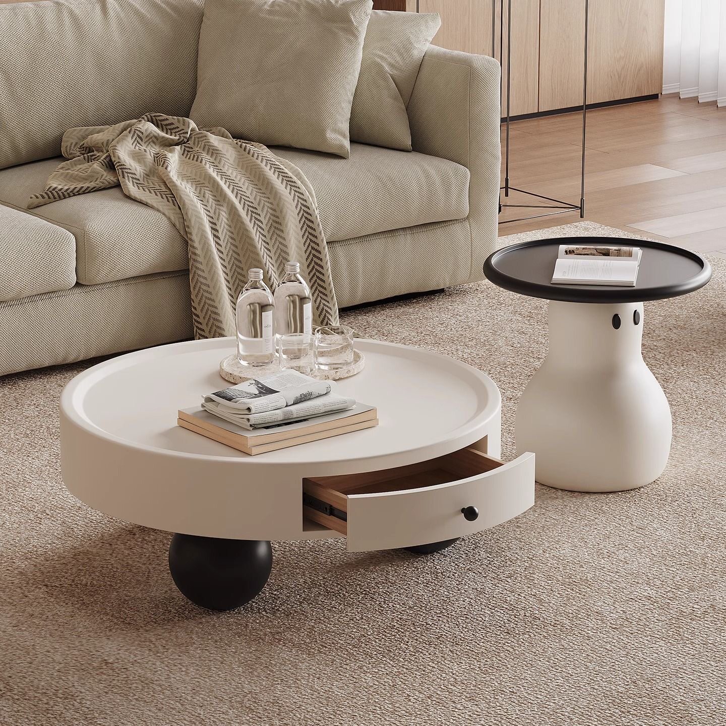 雪人茶几奶油风圆形意式茶几烤漆组合客厅家用小户型储物小圆茶几