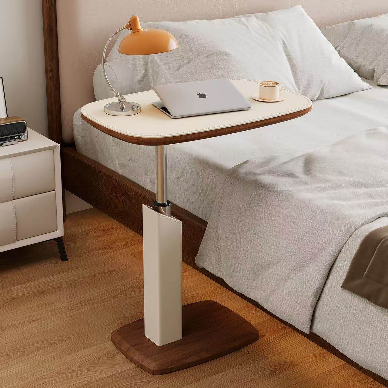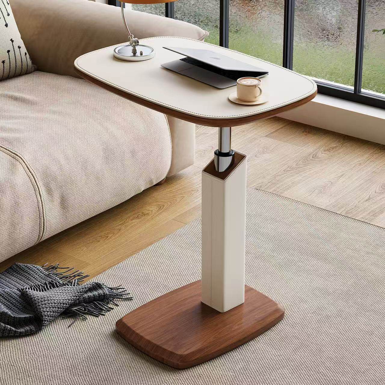 马鞍皮升降边几沙发卡几小茶几可移动客厅迷你桌子床头桌奶油置物
