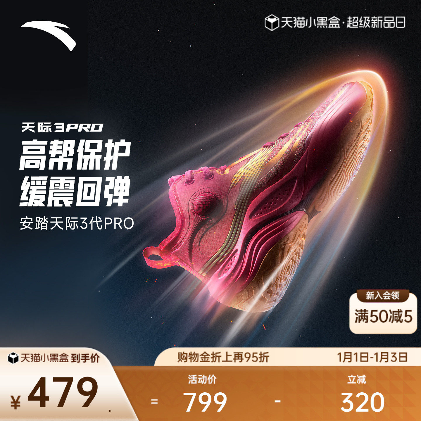 安踏天际3PRO丨氮科技抗扭缓震回弹耐磨专业实战运动高帮篮球鞋男