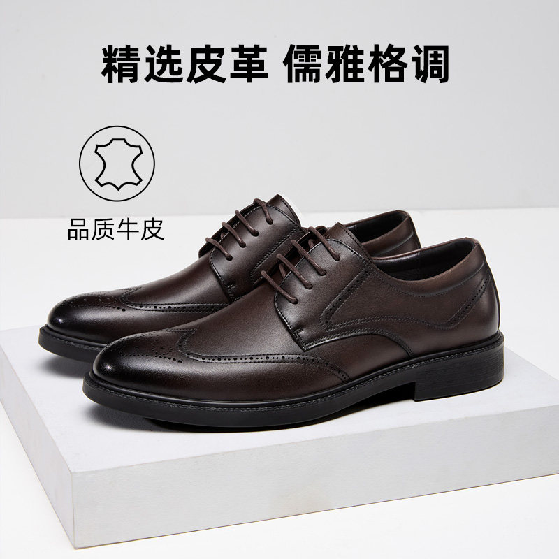 海澜之家男鞋秋冬季正装商务真皮布洛克内增高皮鞋男款加绒德比鞋