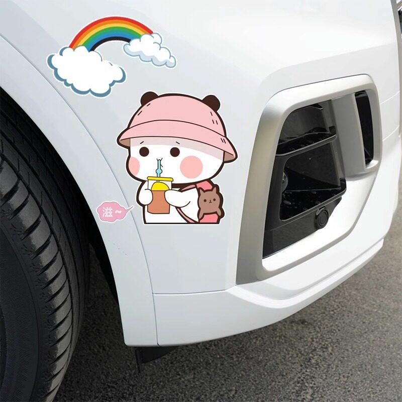 汽车贴纸前保险杠划痕遮挡贴画车身刮痕遮盖小熊贴画车尾剐蹭车贴