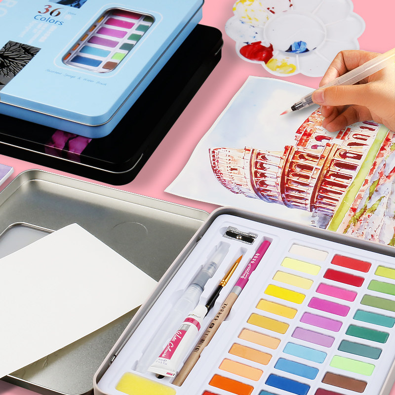 乔尔乔内固体水彩颜料装粉饼学生用初学者色色入门儿童美术2色铁
