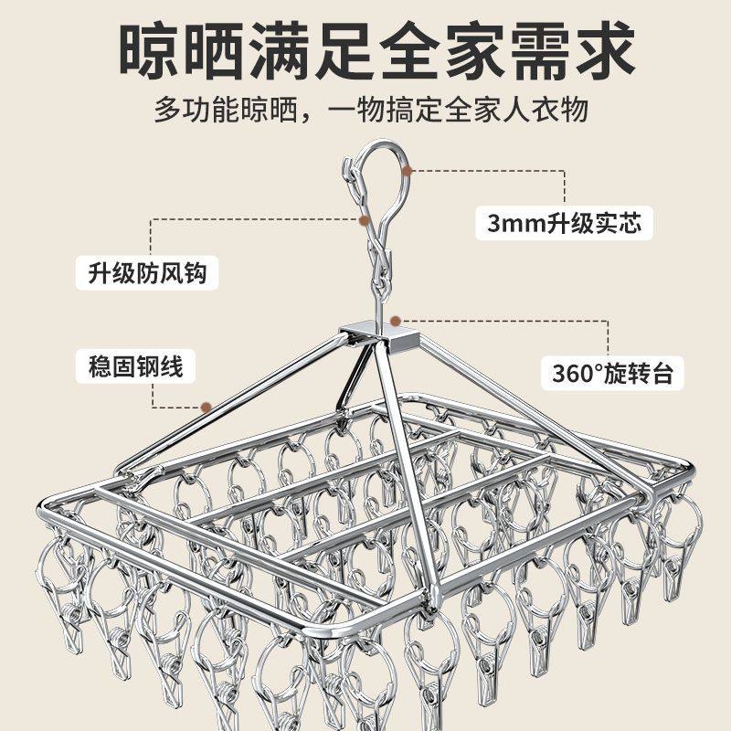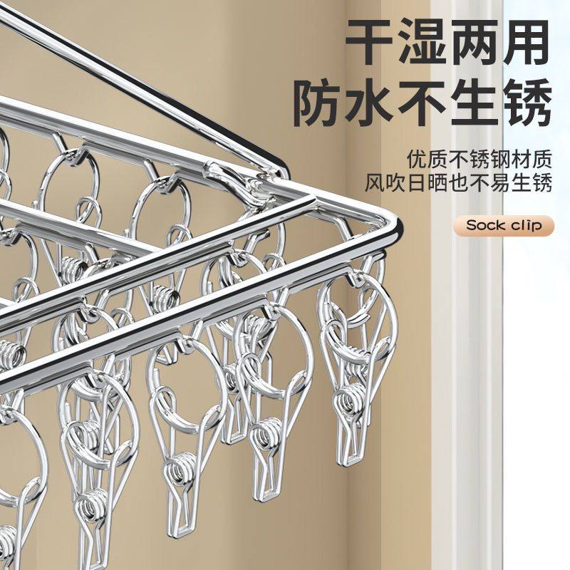 不锈钢多夹子袜子晾晒架家用阳台晾内衣内裤神器防风衣架婴儿袜夹