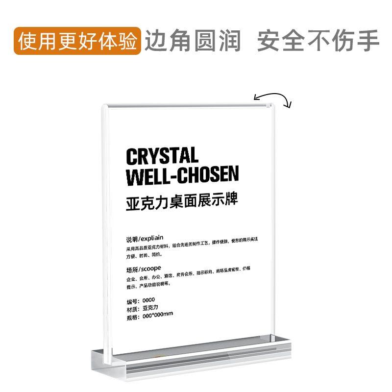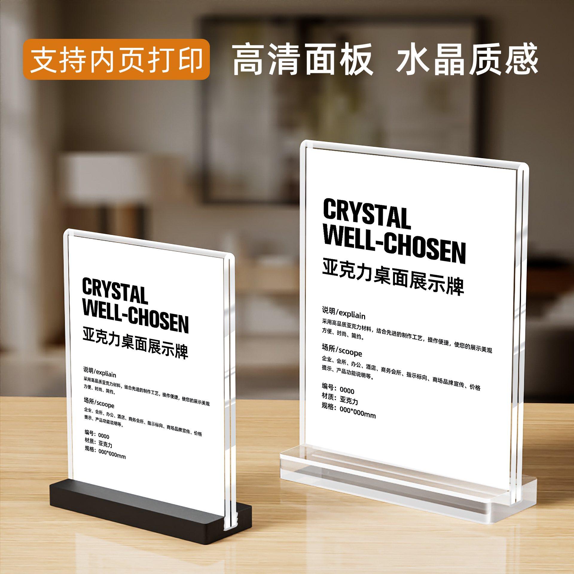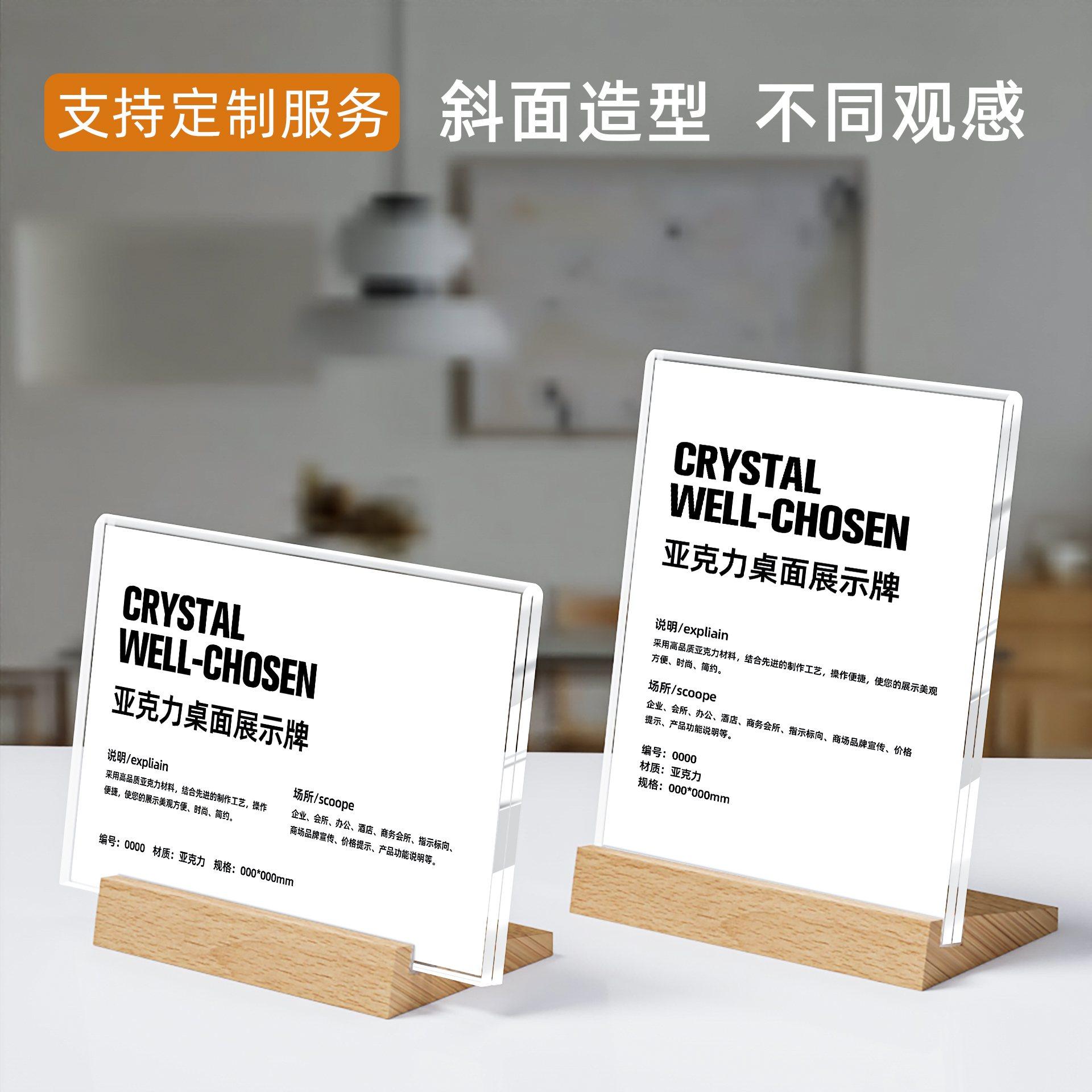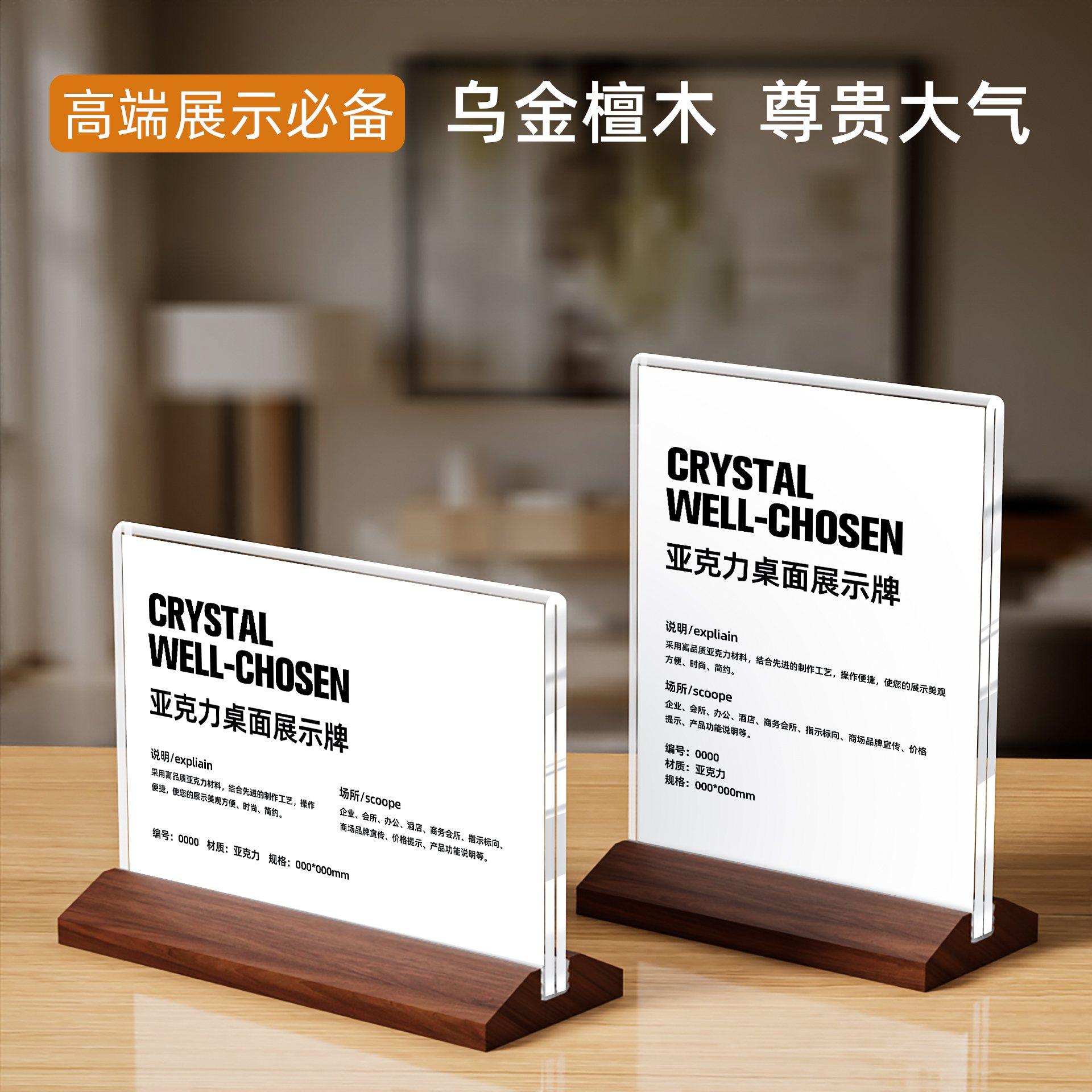 赢纳高档桌牌透明亚克力实木台卡架 T型水晶A4台牌台签美容美甲价格标价牌 POP广告桌面展示牌立牌酒水牌餐牌