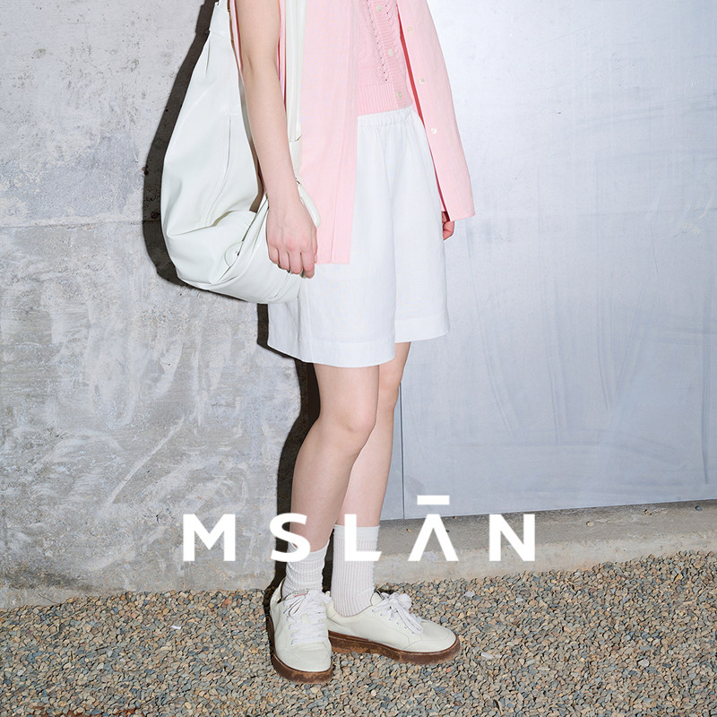 凉感亚麻短裤/MSLAN休闲老钱风 透气松紧腰白色五分裤女MGBK485