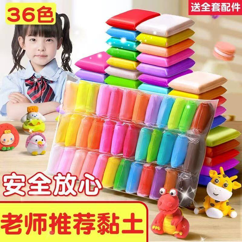 超轻粘土儿童无味食品彩太空泥24色橡皮泥幼儿园级黏土36专用玩具