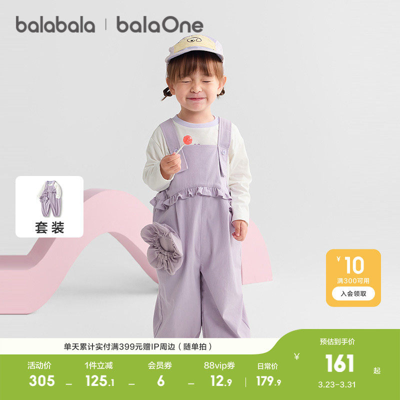 巴拉巴拉balaOne宝宝长袖套装背带裤两件套男童女童秋装纯棉柔软