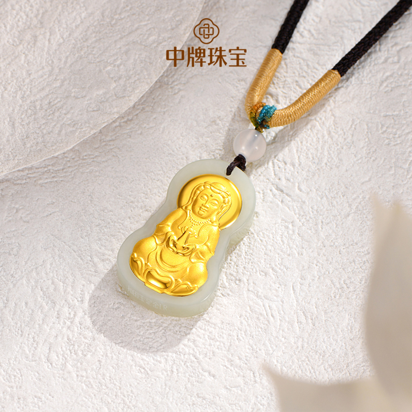 金镶玉吊坠玉观音项链足金镶和田玉颈链本命年守护神玉石观世音