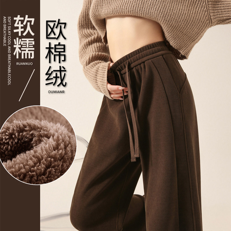 美拉德阔腿裤女秋冬加绒2026新款窄版运动休闲卫裤子小个子白色