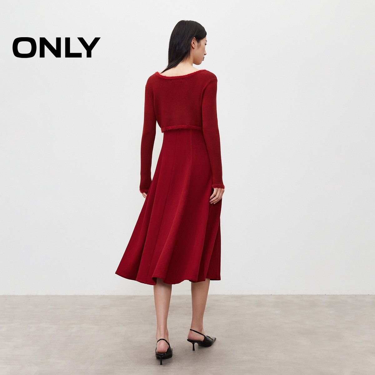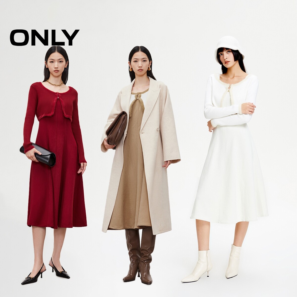 【小香风套装裙】ONLY奥莱春季新款气质长袖针织A字吊带连衣裙女