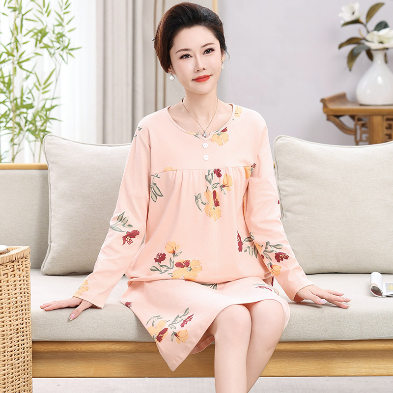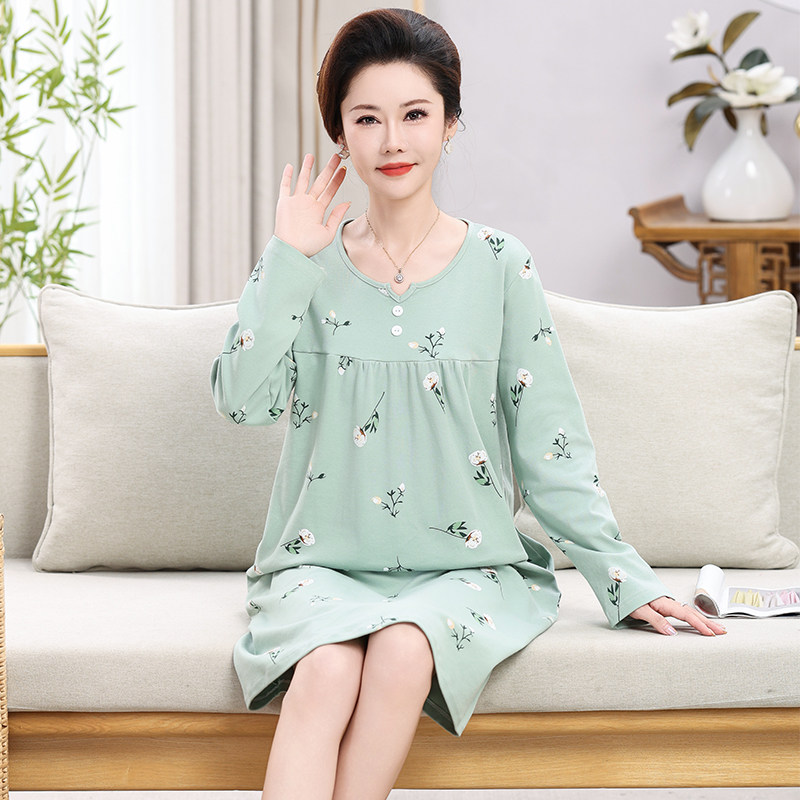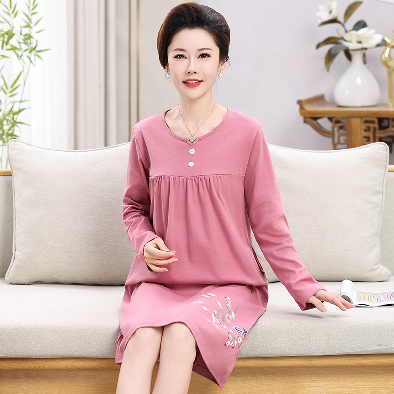 俞兆林妈妈睡衣女春夏睡裙中老年简约大方大码可外穿家居服多规格