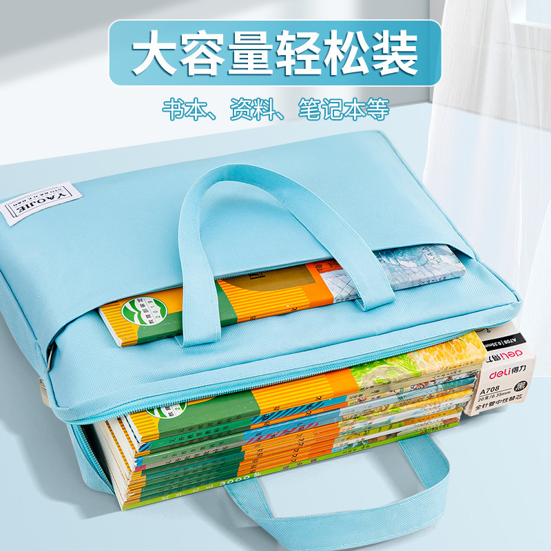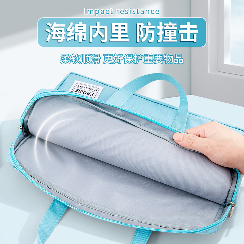 手提文件袋拎书袋补习包14寸笔记本电脑包女小清新公文包商务办公包帆布简约拉链事务包学生美术袋定制订做
