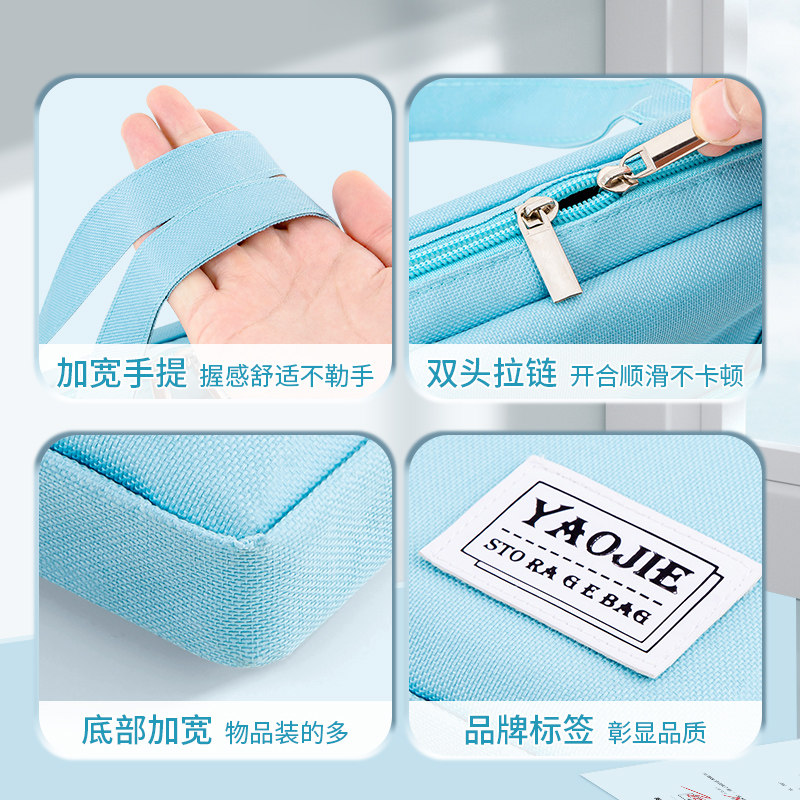 科目分类文件袋透明拉链式a4收纳拎书课外班作业男女孩书包小学初中生l型考试试卷学科补习网纱手提袋大容量