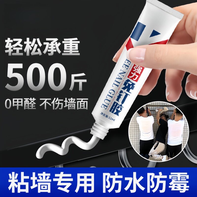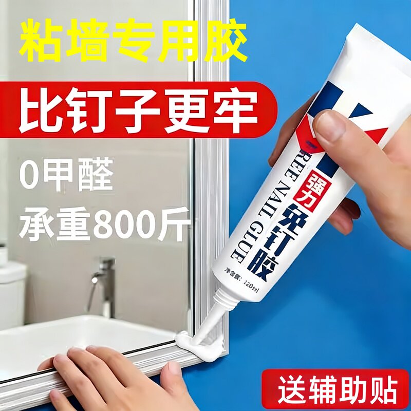 强力高粘免钉胶高粘度粘墙面金属墙壁镜子瓷砖踢脚线卫生间置物架贴墙专用防水家用胶多功能粘得牢免打孔胶水