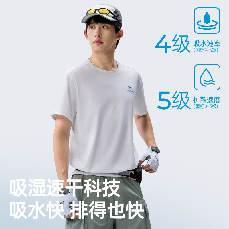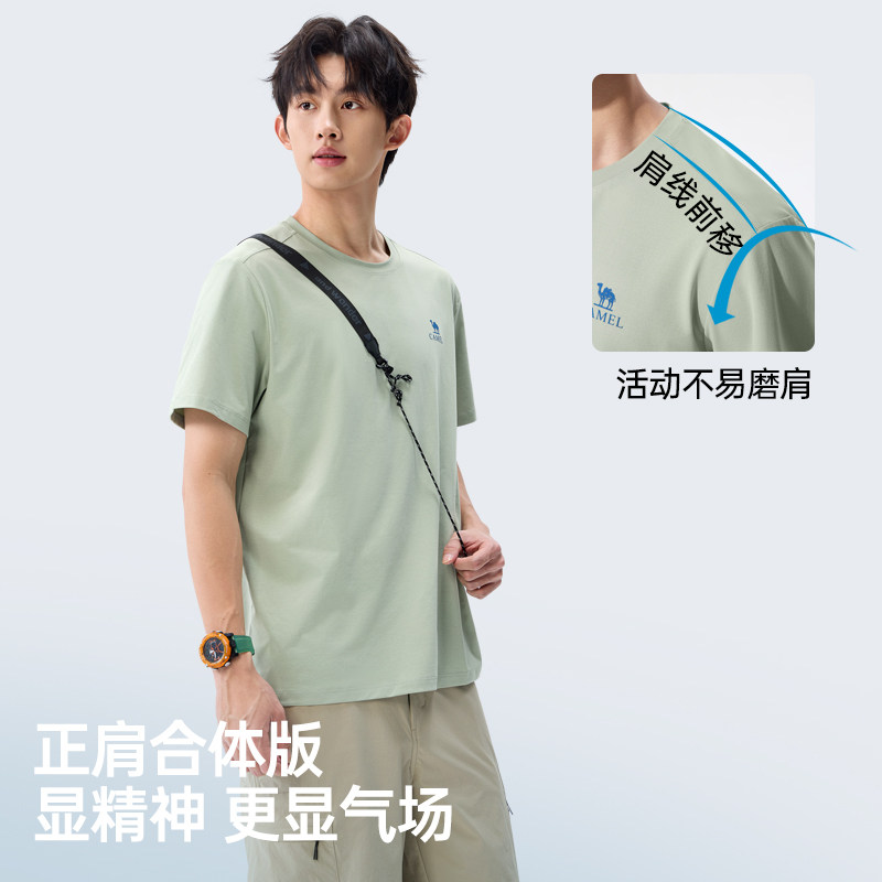 骆驼男装索罗娜速干短袖t恤男夏季2026新款圆领宽松纯色半袖体恤