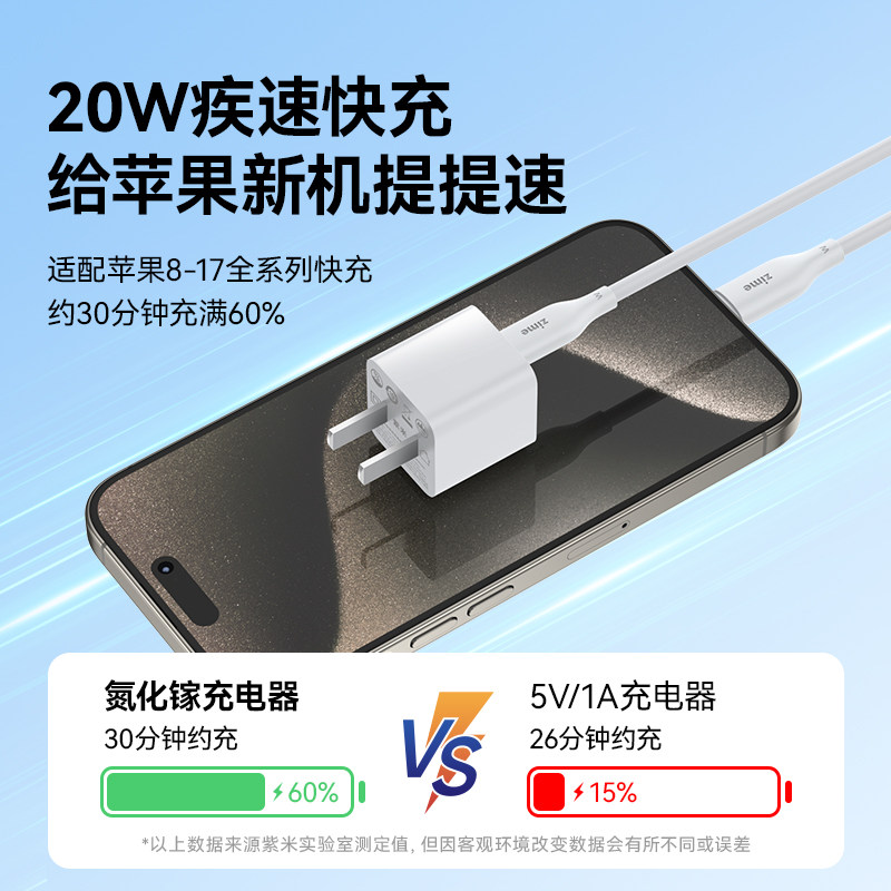 紫米正品20W充电头PD快充闪充18W适用苹果iPhone17/16/15/14ProMax华为小米手机iPad插头氮化镓充电器线套装