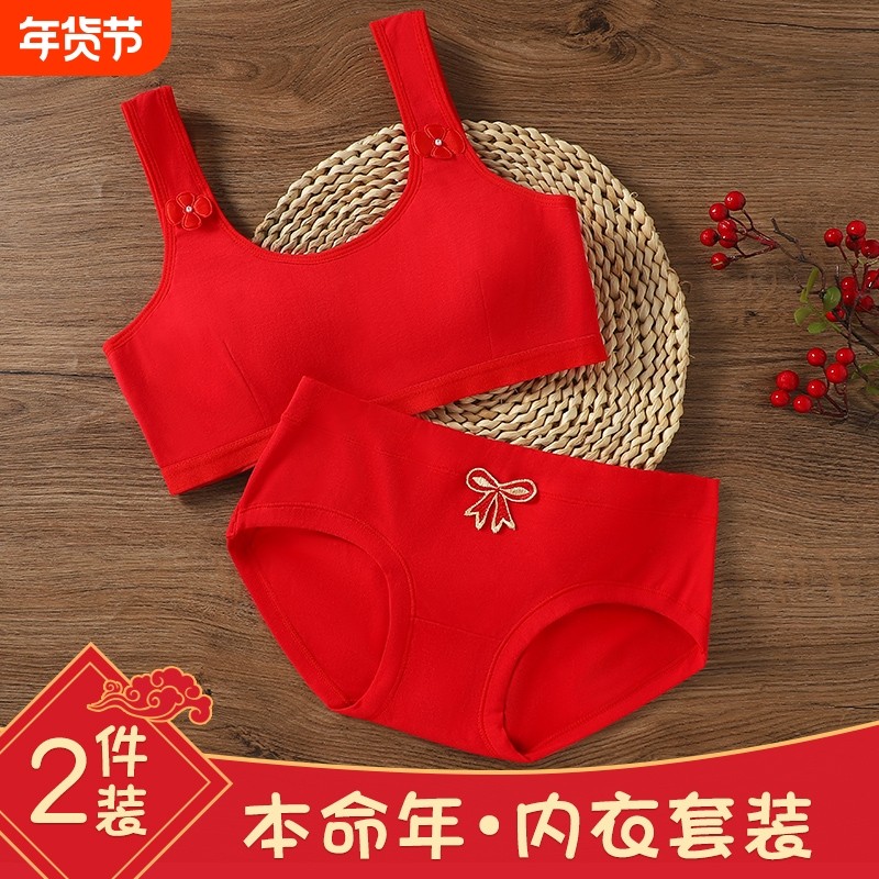 女童本命年红内衣套装蛇年12岁少女学生无痕内裤儿童发育期小背心