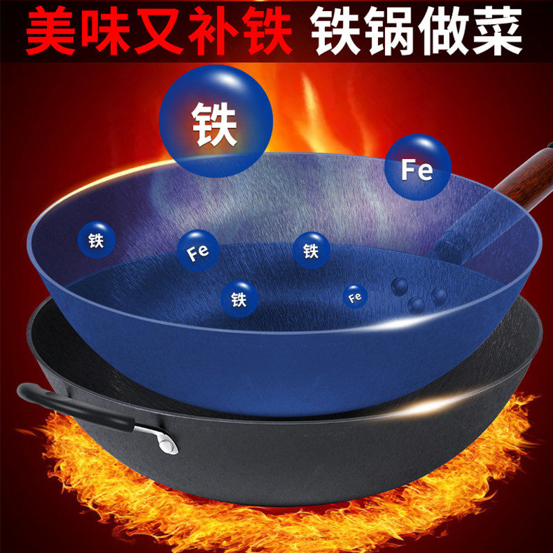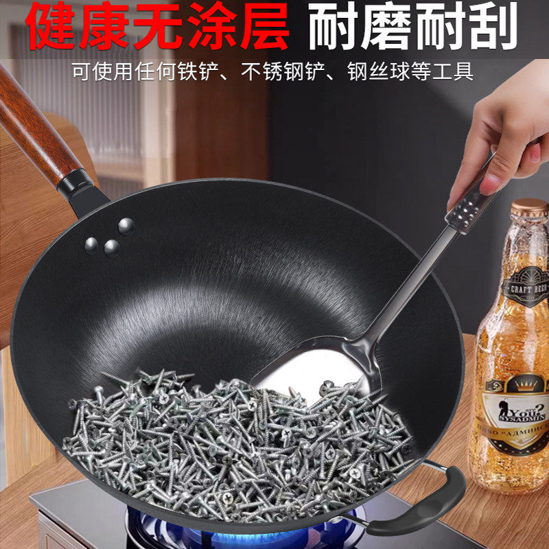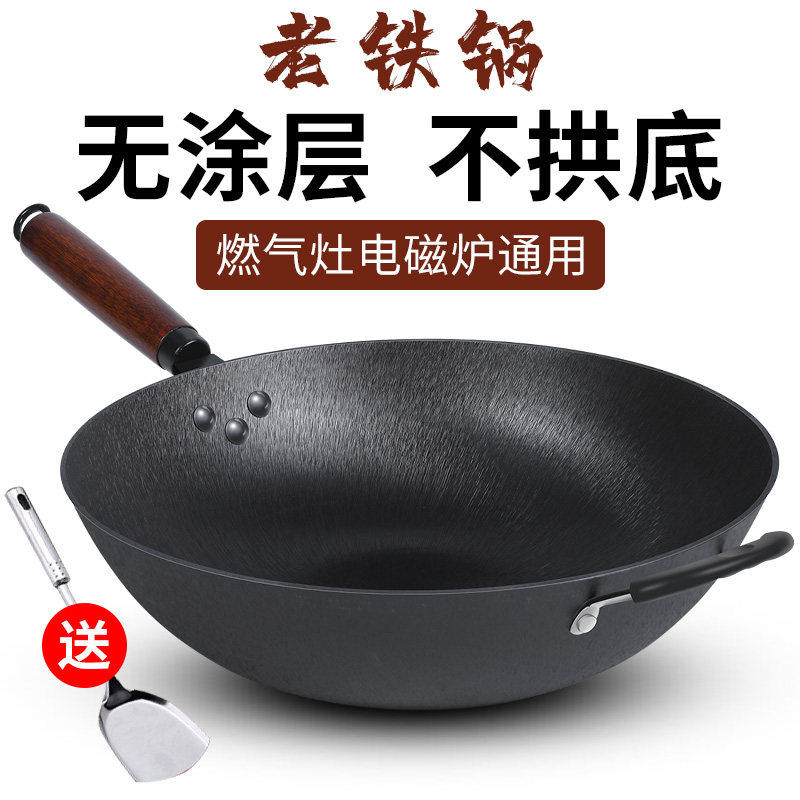 铁锅官方旗舰炒菜锅老式炒锅铁锅家用不粘锅无涂层燃气灶适用