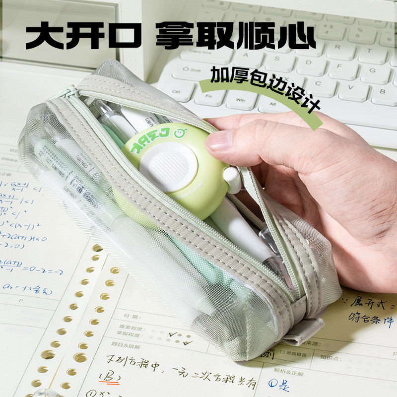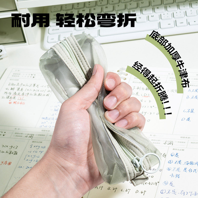 得力BC378轻韵时光系列便携小方包多用途笔袋 (绿/黑)(个)