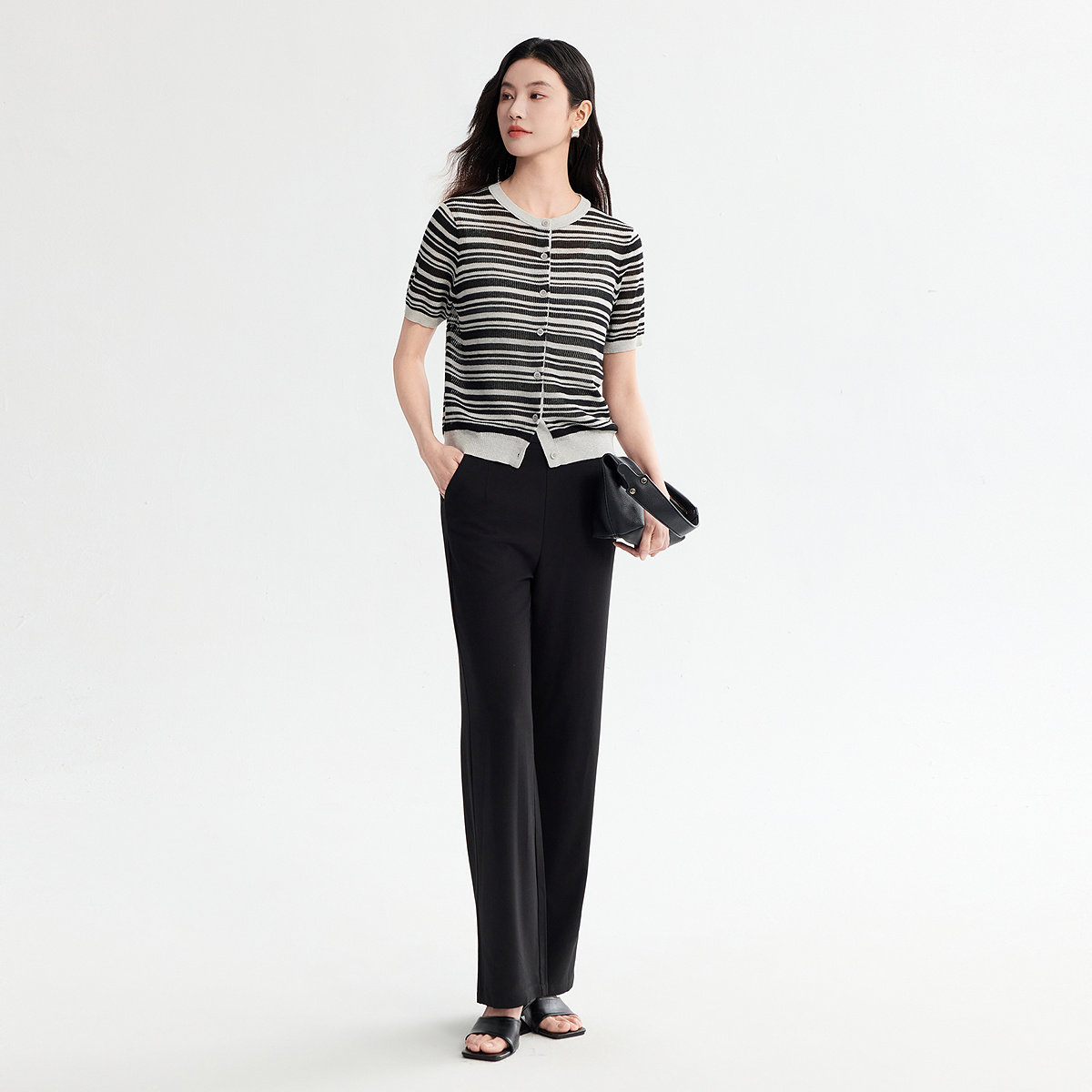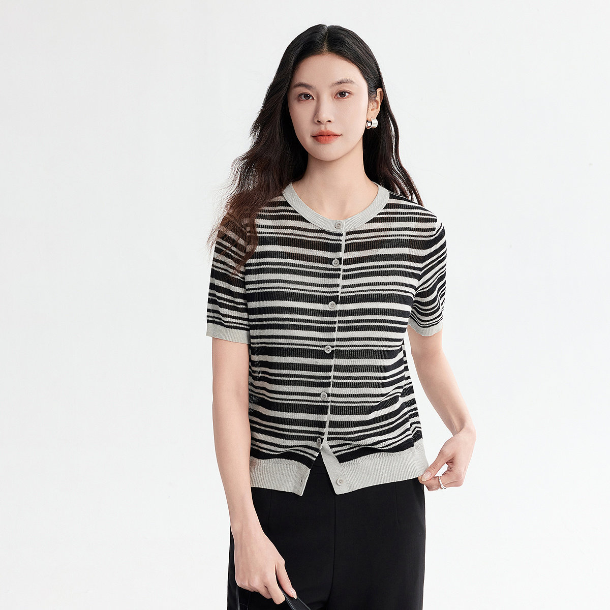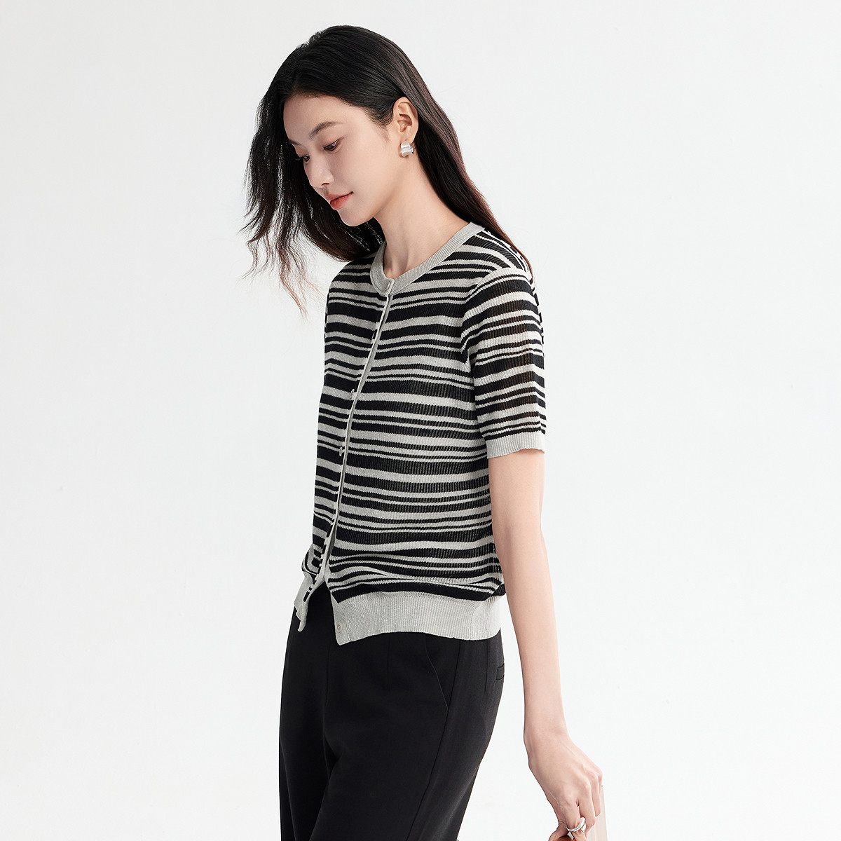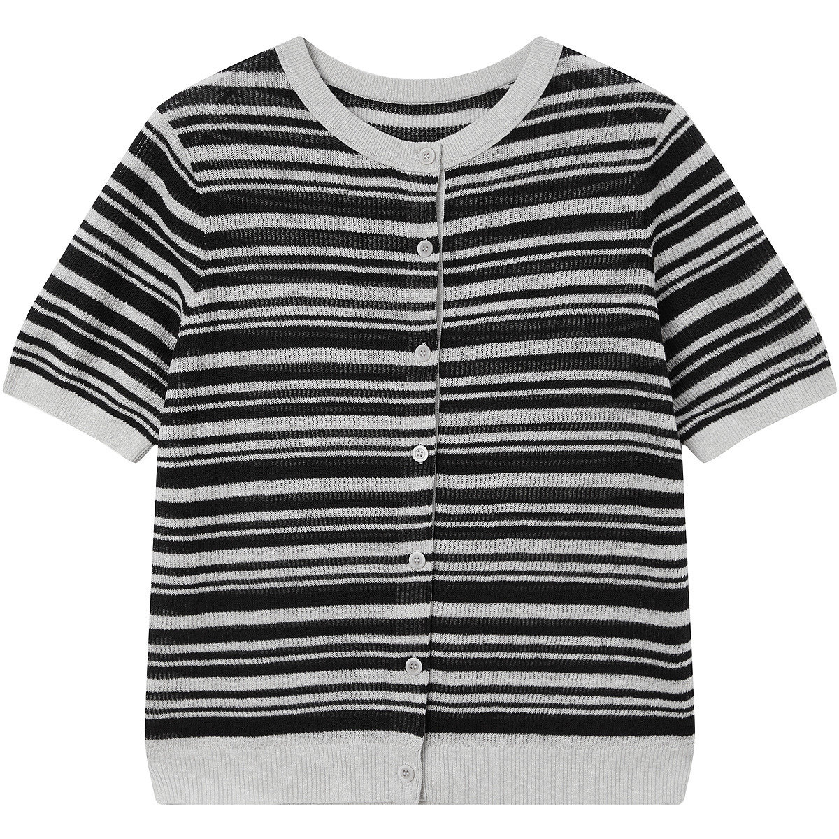 FINITY菲妮迪针织衫2026年夏季新款简约圆领条纹小香风短袖上衣女