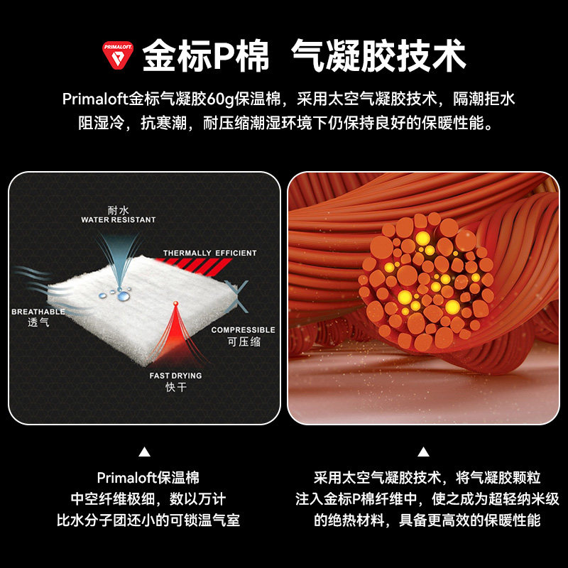 金标P棉,气凝胶技术,轻暖抗湿冷