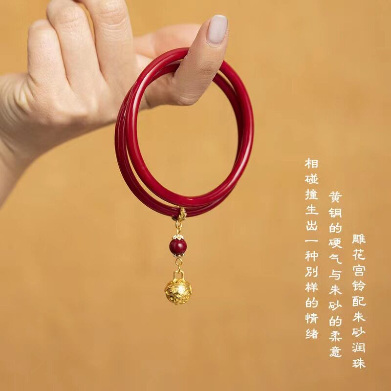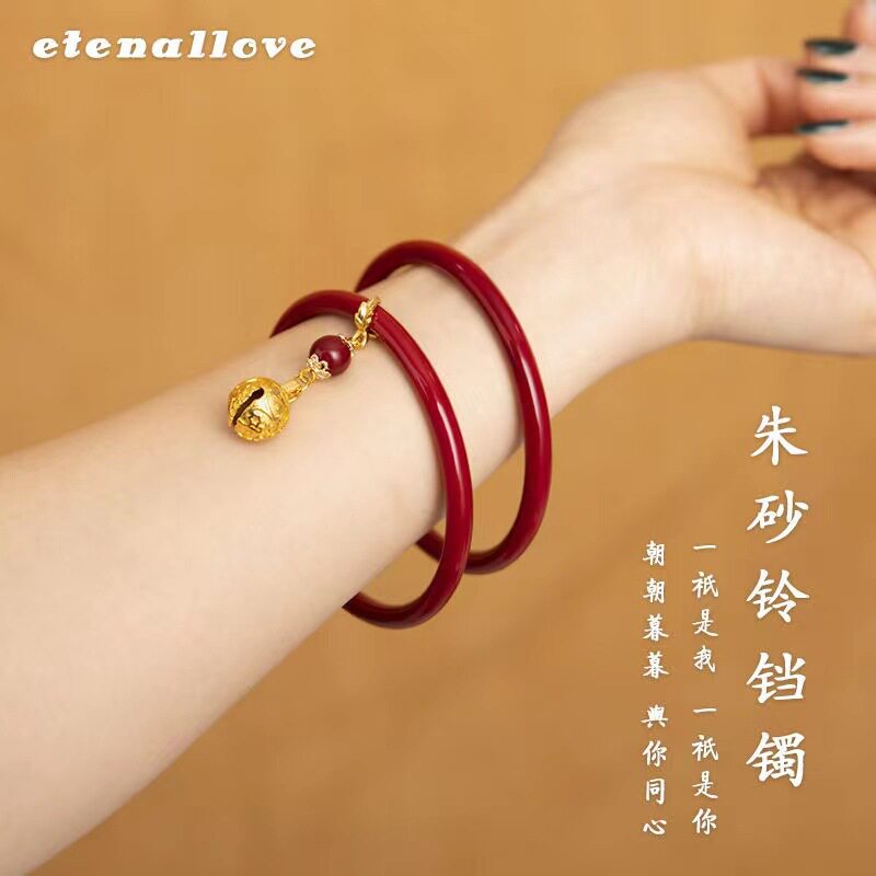 手工红叮当镯仿朱砂吊坠手链本命年平安女款琉璃手镯细条闺蜜礼物