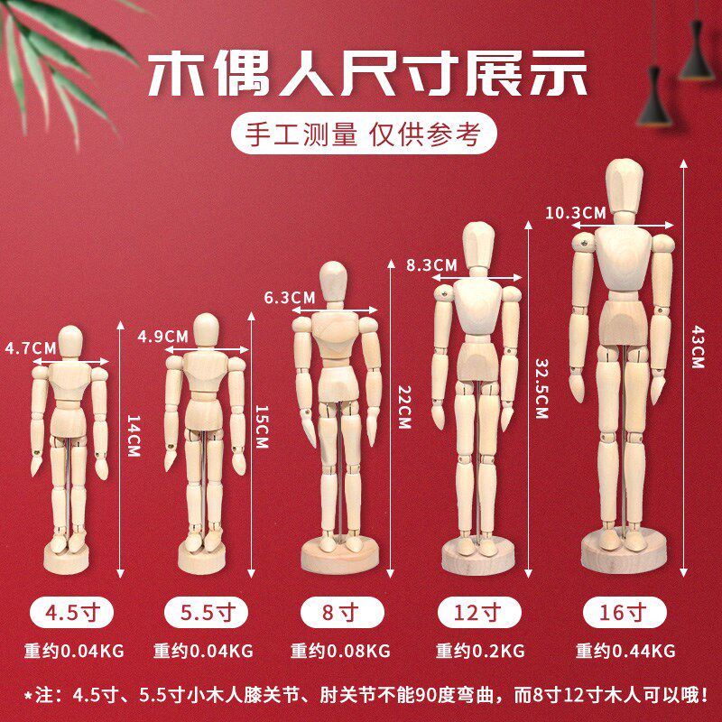 漫画12寸木头人 木人木手模x型 木偶人 木人偶 素描木偶可动人体