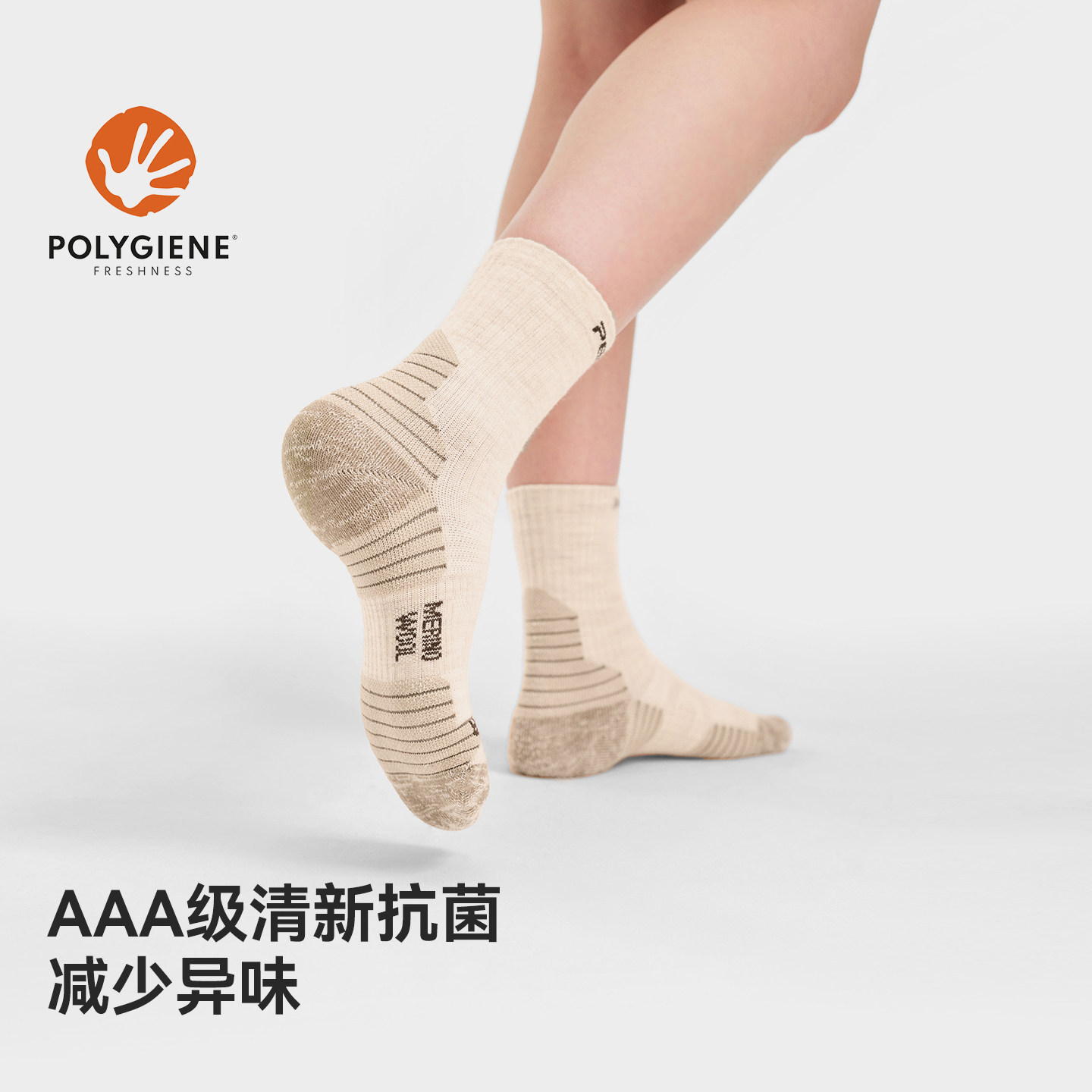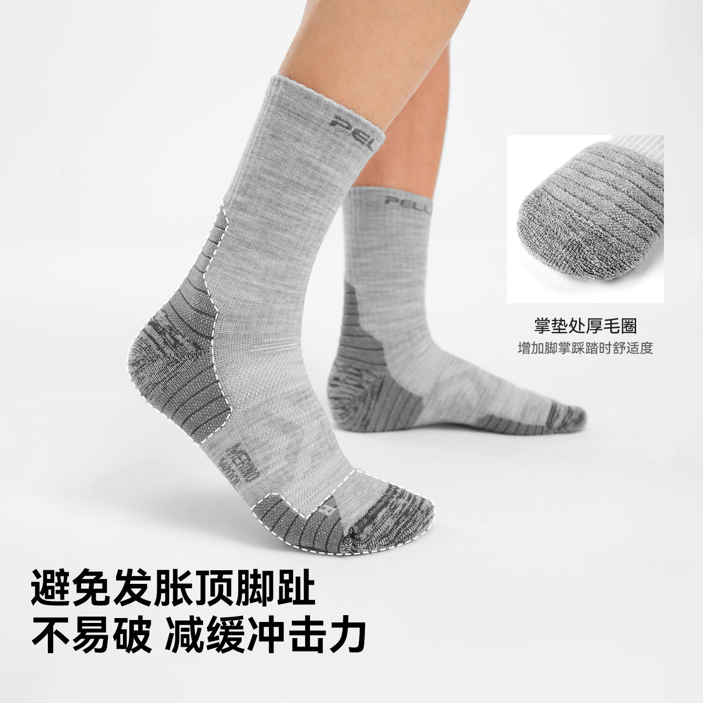 伯希和户外徒步袜男美利奴羊毛冬专业登山保暖跑步运动袜子中筒女