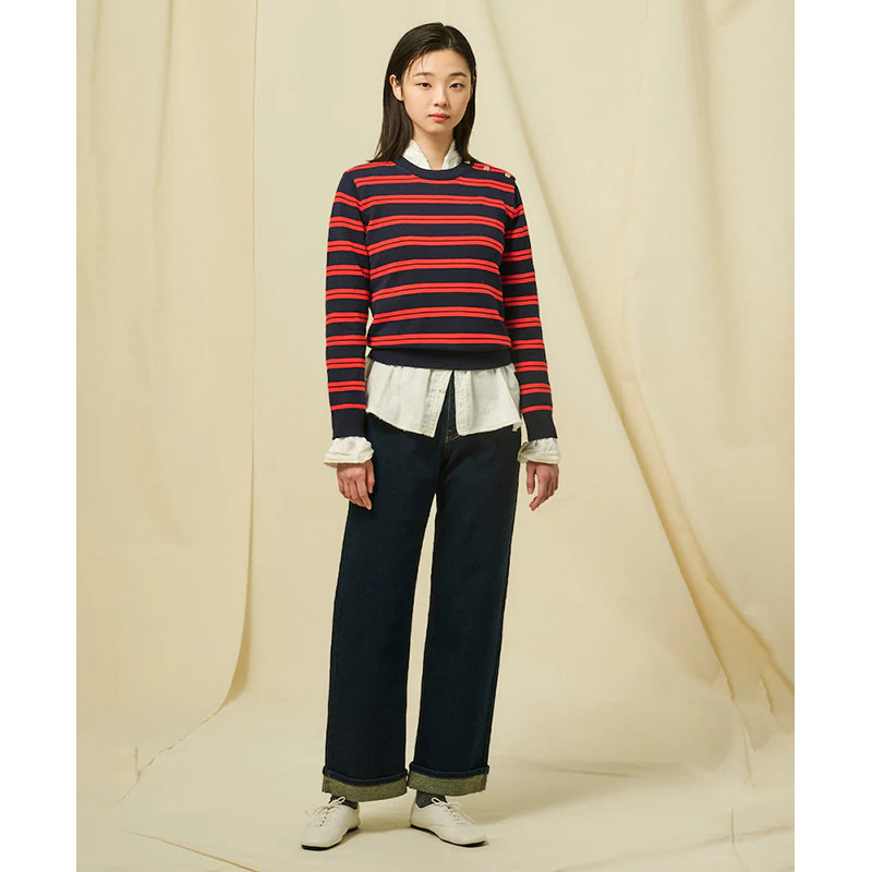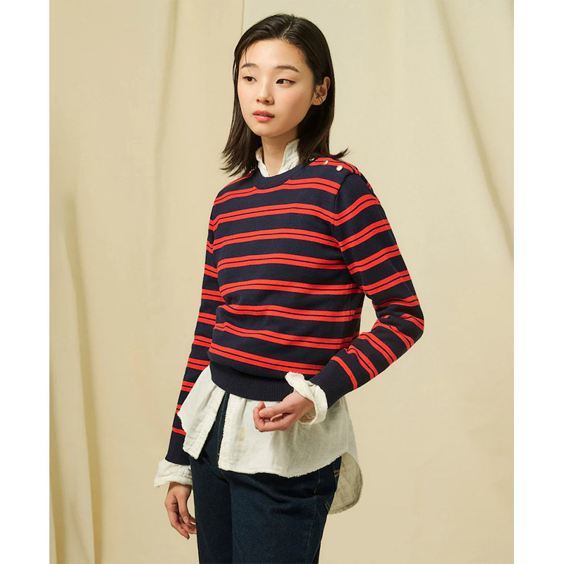 【新品】BEANPOLE滨波 春夏女士复古红色撞色条纹套头圆领针织衫