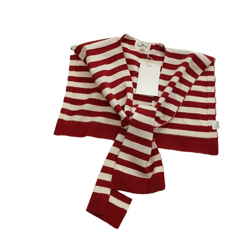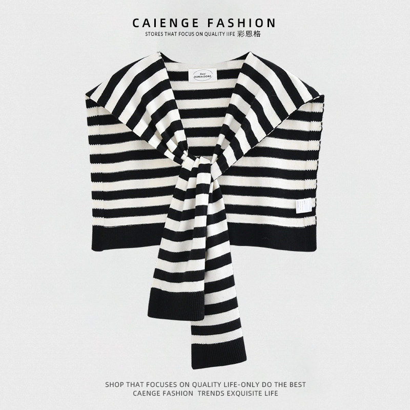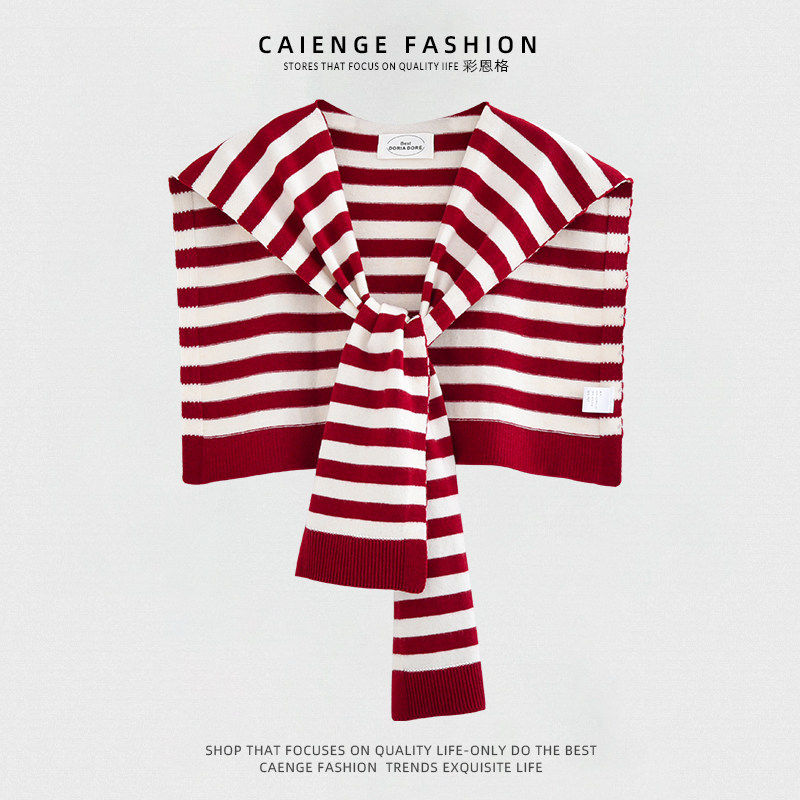 安哥拉红针织条纹羊毛披肩女春秋外搭假领子披肩围巾百搭坎肩女