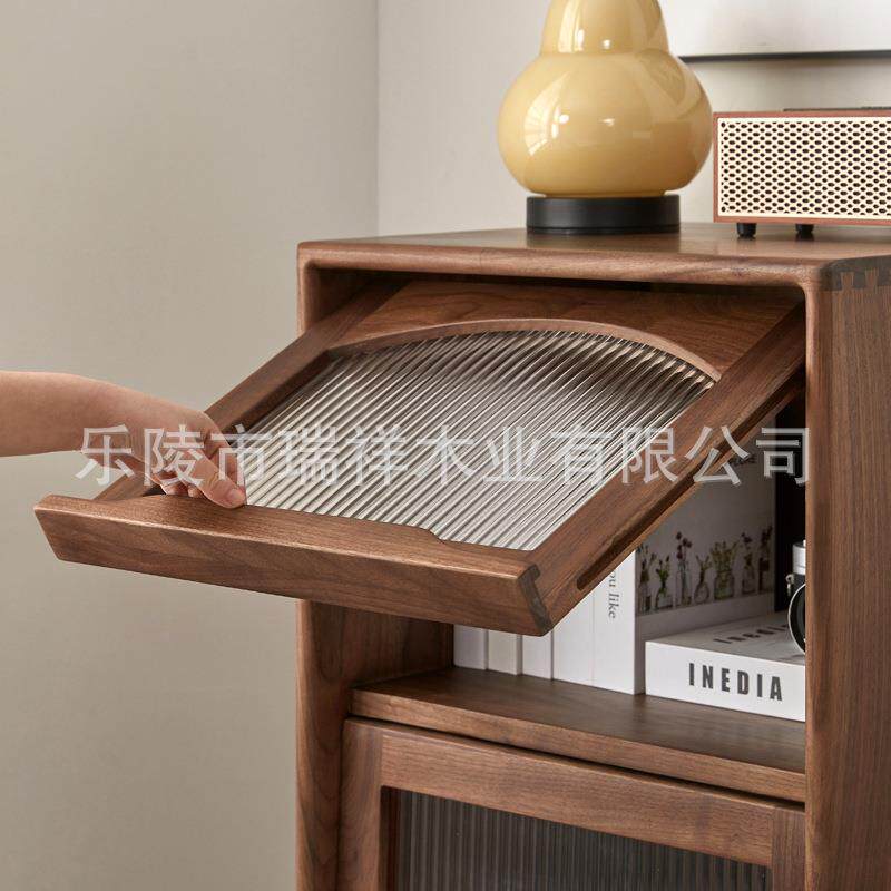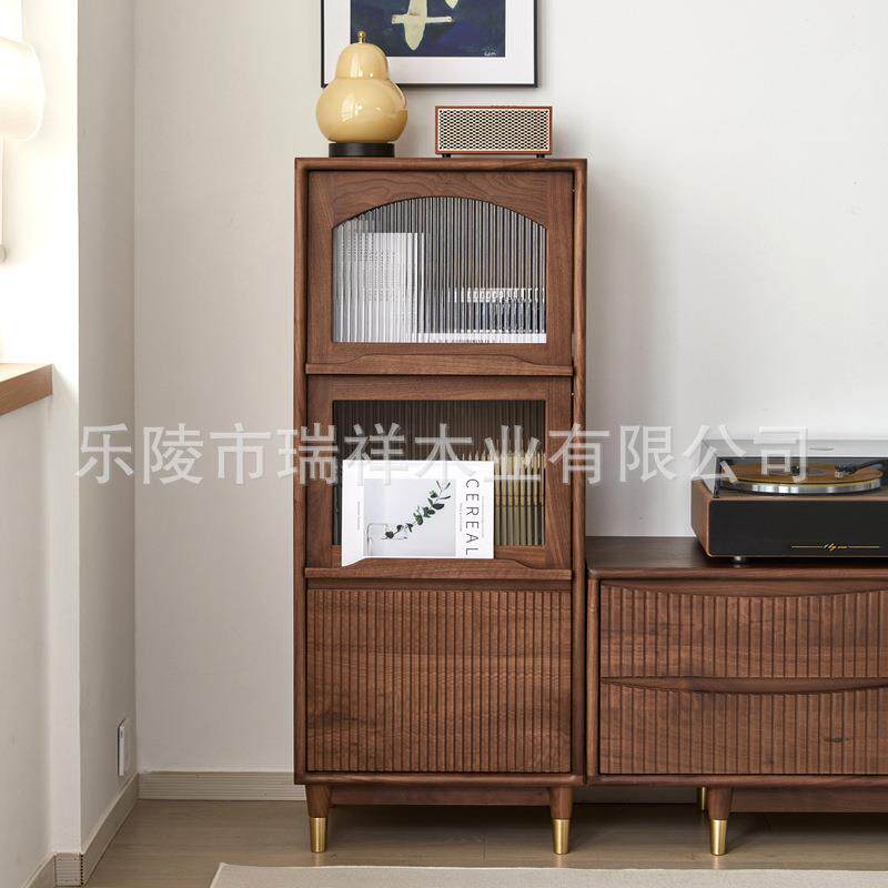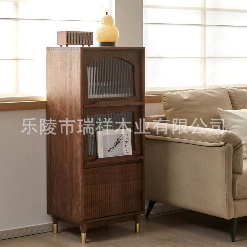 北美黑胡桃木复古电视柜边柜简约现代樱桃木实木斗柜收纳储物柜
