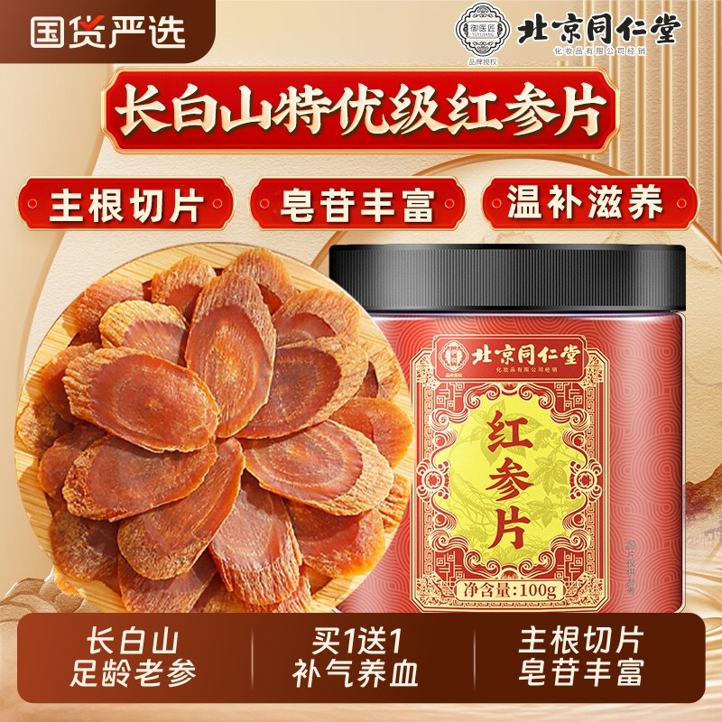 北京同仁堂长白山红参片干人参片茶高丽参中草药材正品官方旗舰店