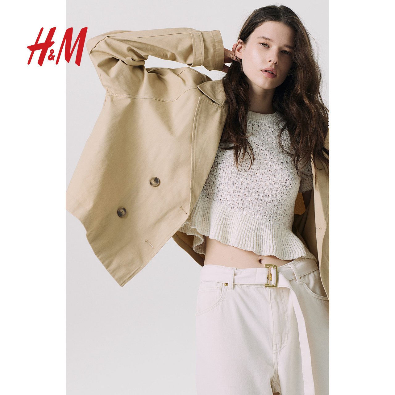 HM2025年冬季新款女装短风衣长袖1259401