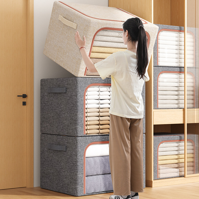 真棉麻加厚衣服收纳箱布艺衣物整理盒折叠衣柜筐袋家用换季新神器