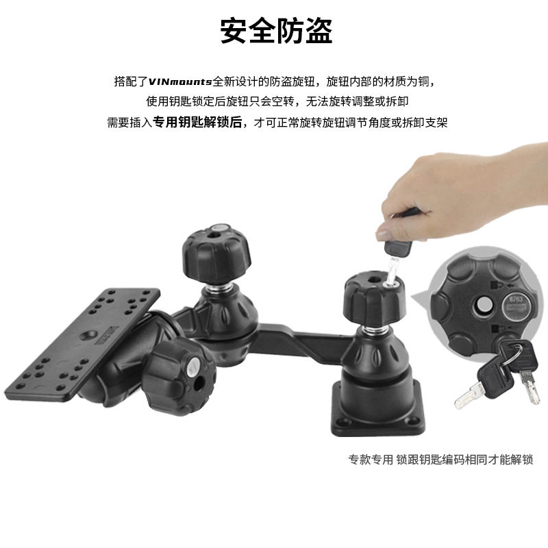 海钓成像仪固定带锁防盗横臂球头支架万向调节佳明探鱼器摆臂支架