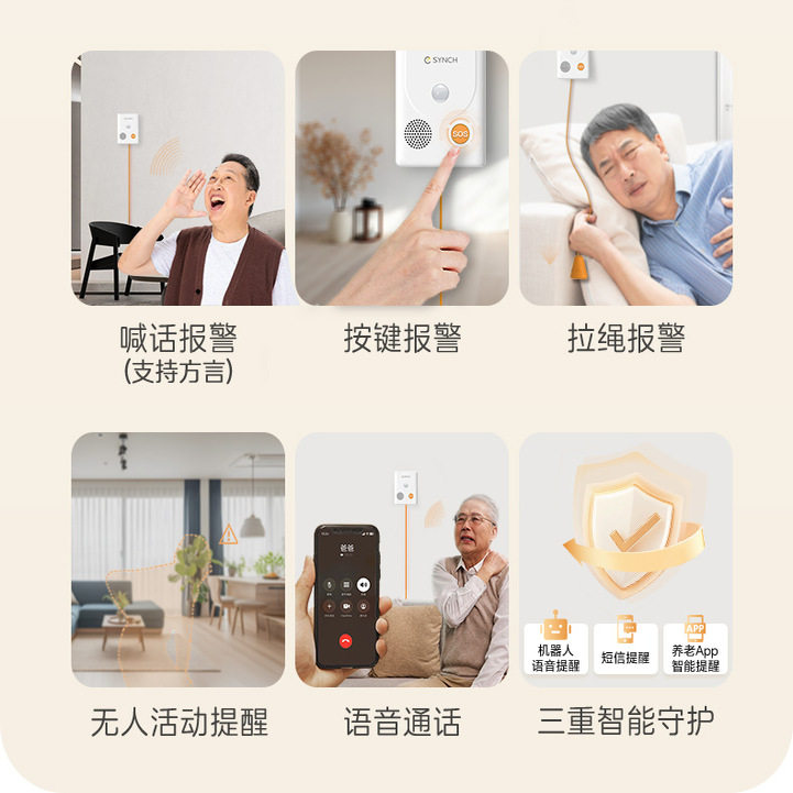 老人智能语音报警器 老人24小时安全守护 紧急呼救一键拉绳报警器