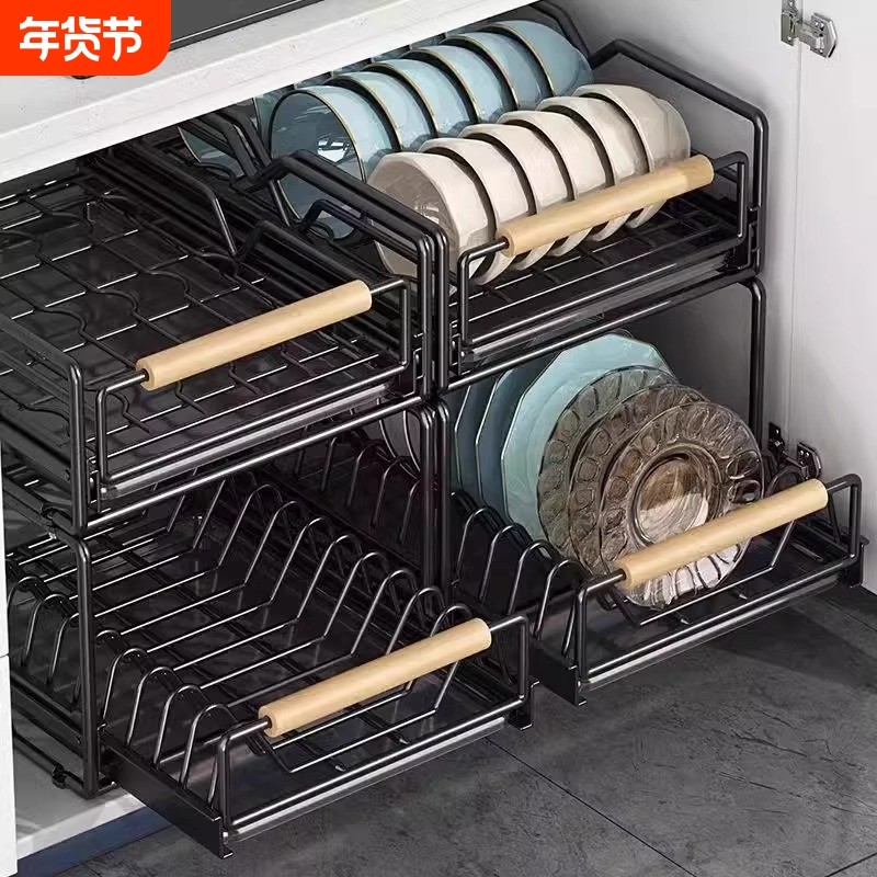 厨房碗碟收纳架橱柜内置物架抽屉式拉篮抽拉碗篮放碗盘沥水碗架子