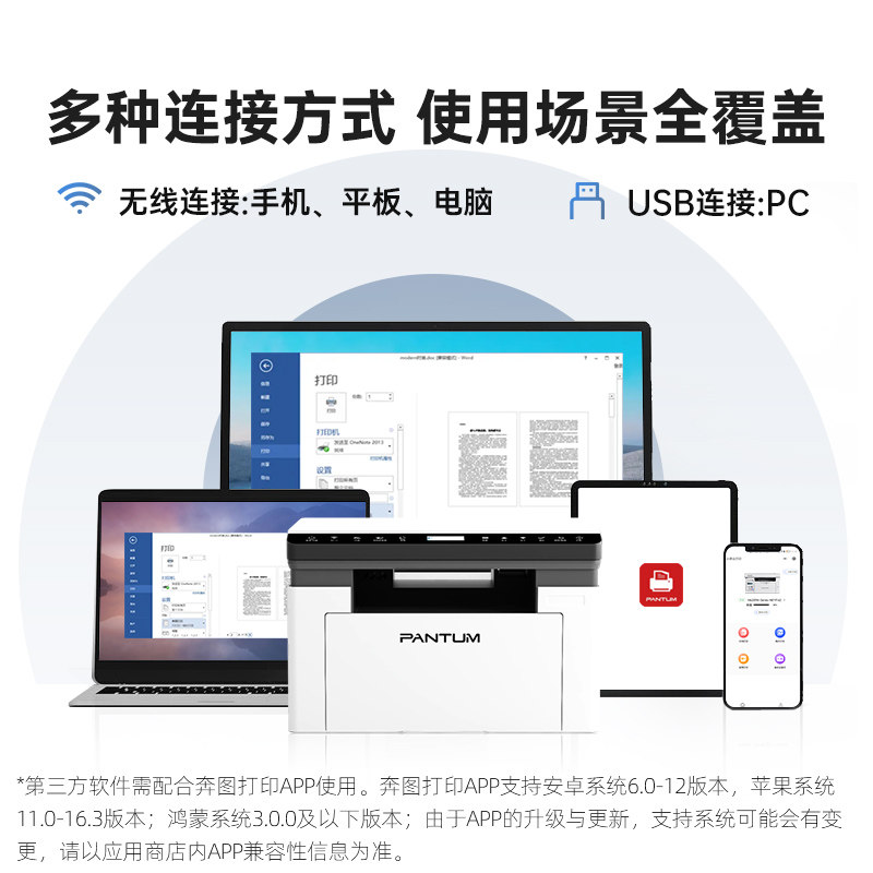 奔图官方旗舰店BM2307W黑白激光打印机复印扫描一体机办公专用无线远程家用小型A4三合一