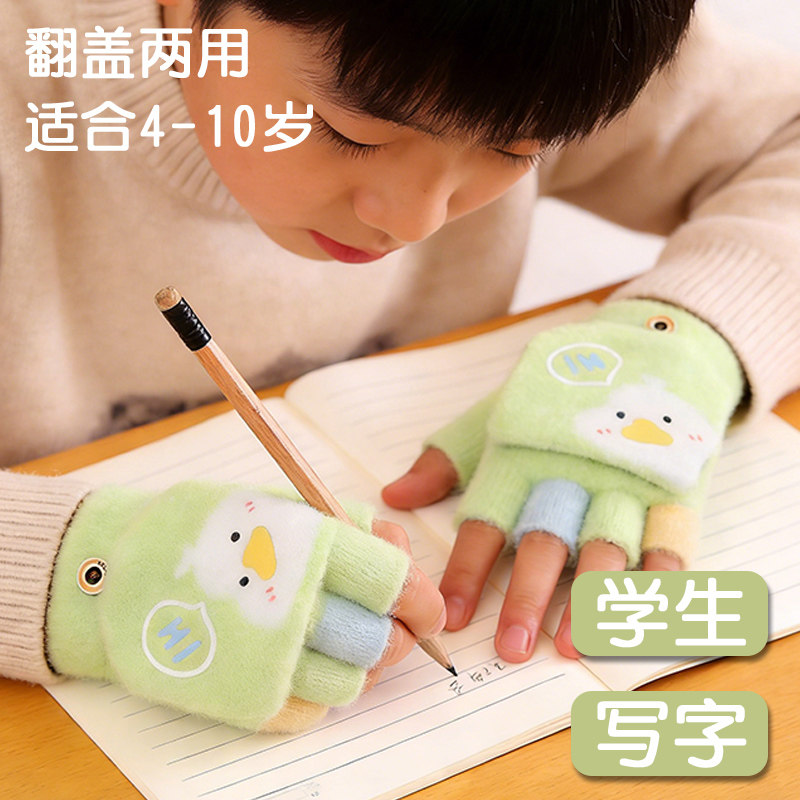 儿童手套男童可写字冬季保暖小孩五指翻盖男孩学生半指写作业冬天