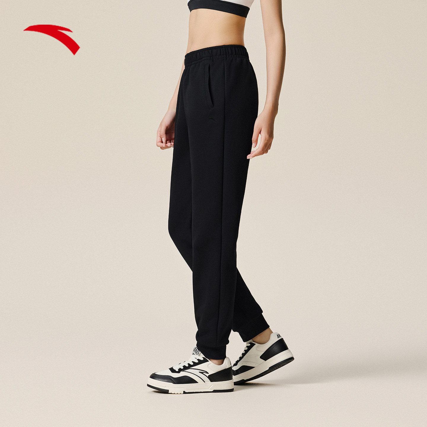 安踏运动长裤女裤春季透气黑色针织裤休闲跑步收口卫裤百搭束脚裤