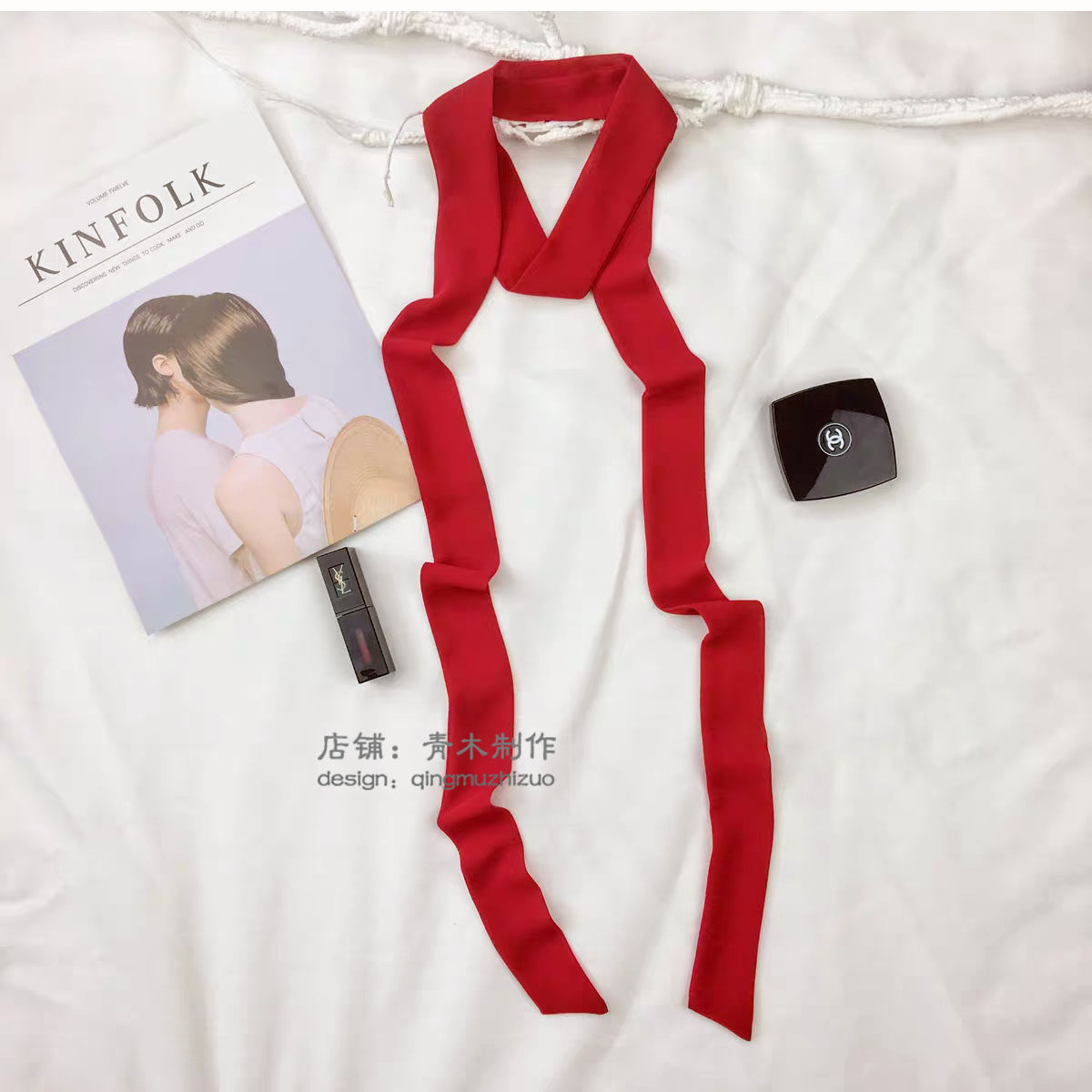 赵露思同款丝带脖带领带雪纺发带细长飘带窄丝巾双层领巾小围巾女